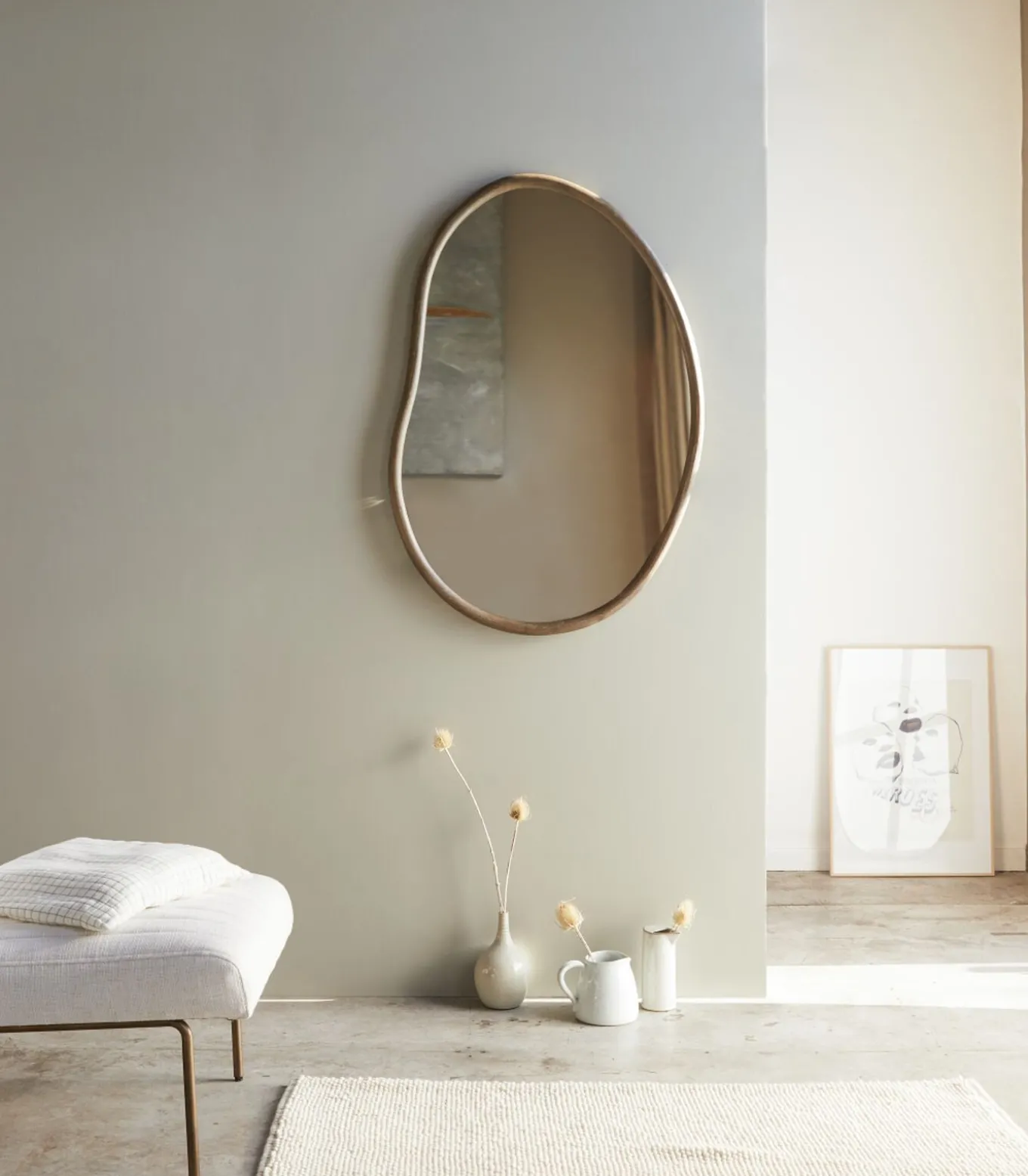 Om op zichzelf te staan of om te combineren met zijn kleine broertje (zoals op onze foto), de mindi spiegel van 85 cm.