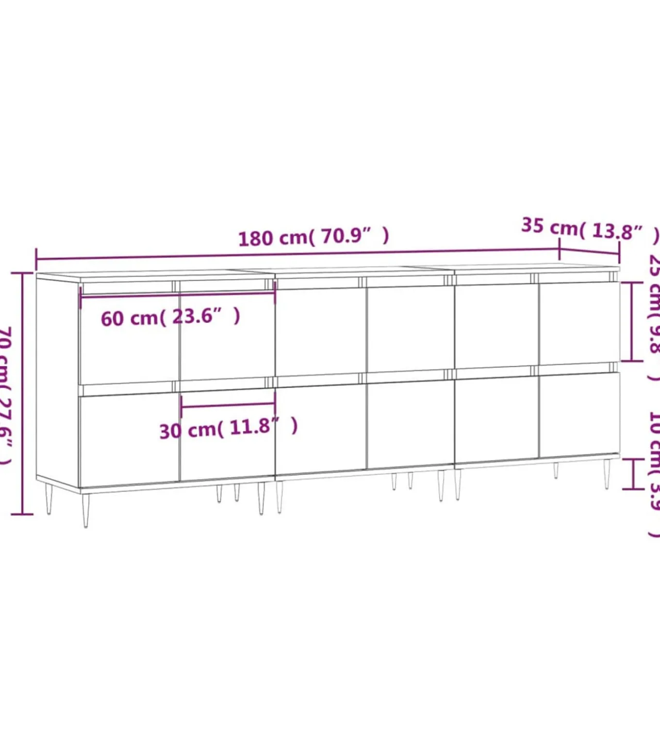 Totale afmetingen: 180 x 35 x 70 cm (B x D x H)