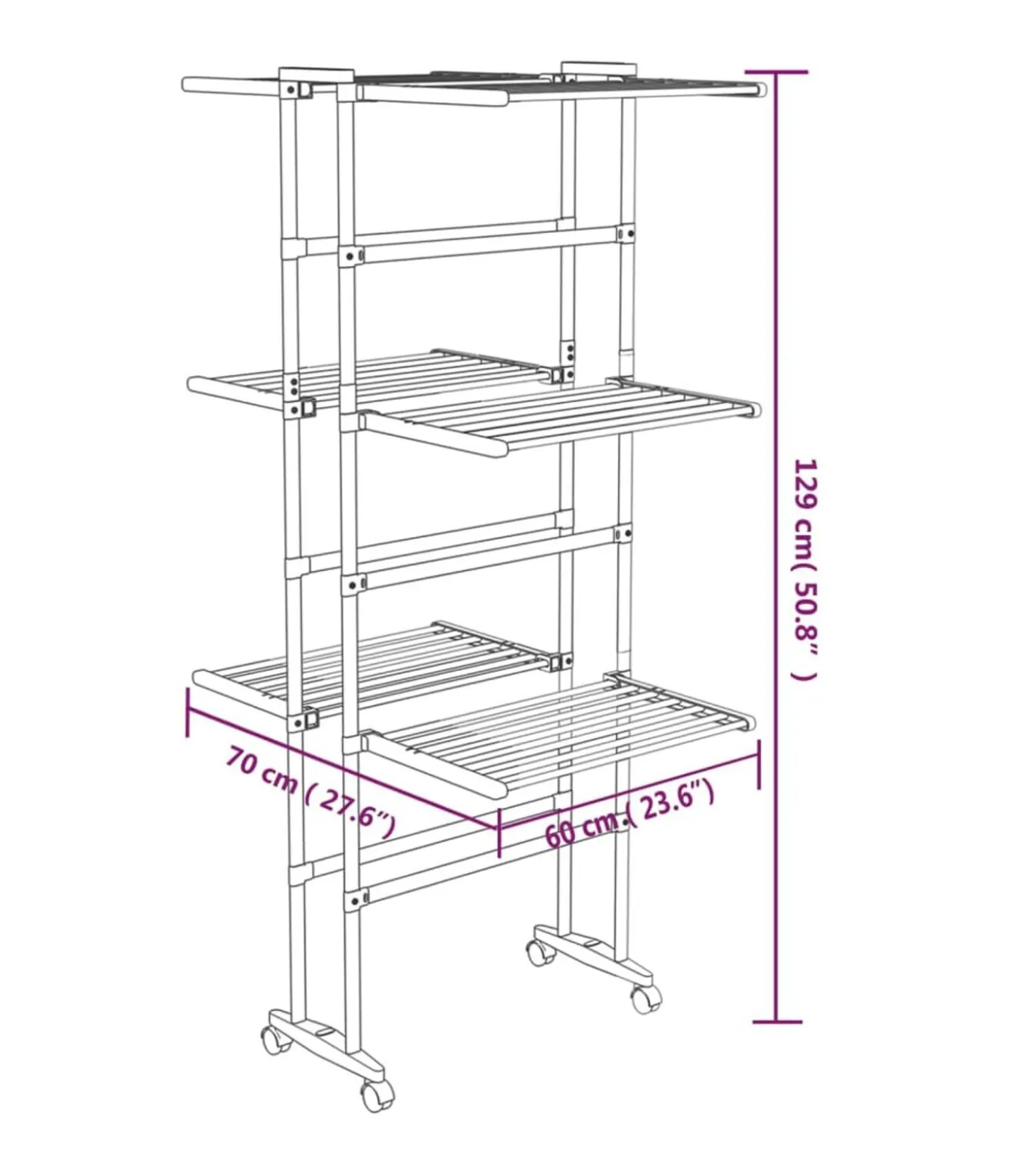 Be the first to review “Droogrek 3-laags met wieltjes 60x70x129 cm zilverkleurig” Reactie annuleren