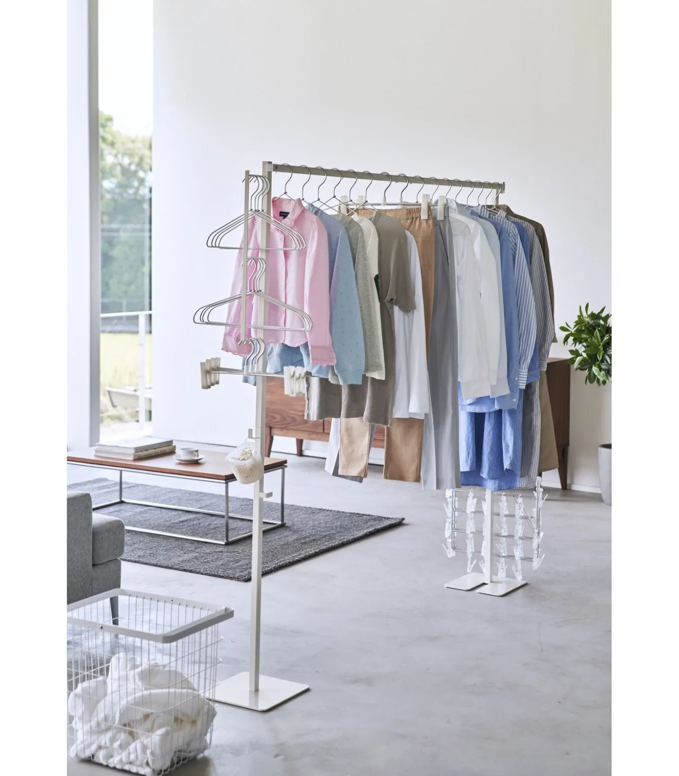 Dit slimme droogrek van Yamazaki is een handige en ruimtebesparende oplossing om je was op te hangen en te laten drogen. Het rek is inklapbaar voor gemakkelijke opslag wanneer je hem niet gebruikt, maar biedt voldoende ruimte voor het organiseren van kleding, manden en hangers wanneer hij is uitgevouwen. De haken zorgen voor nog meer opslagopties. Installeer het overal in je huis voor extra gemak.