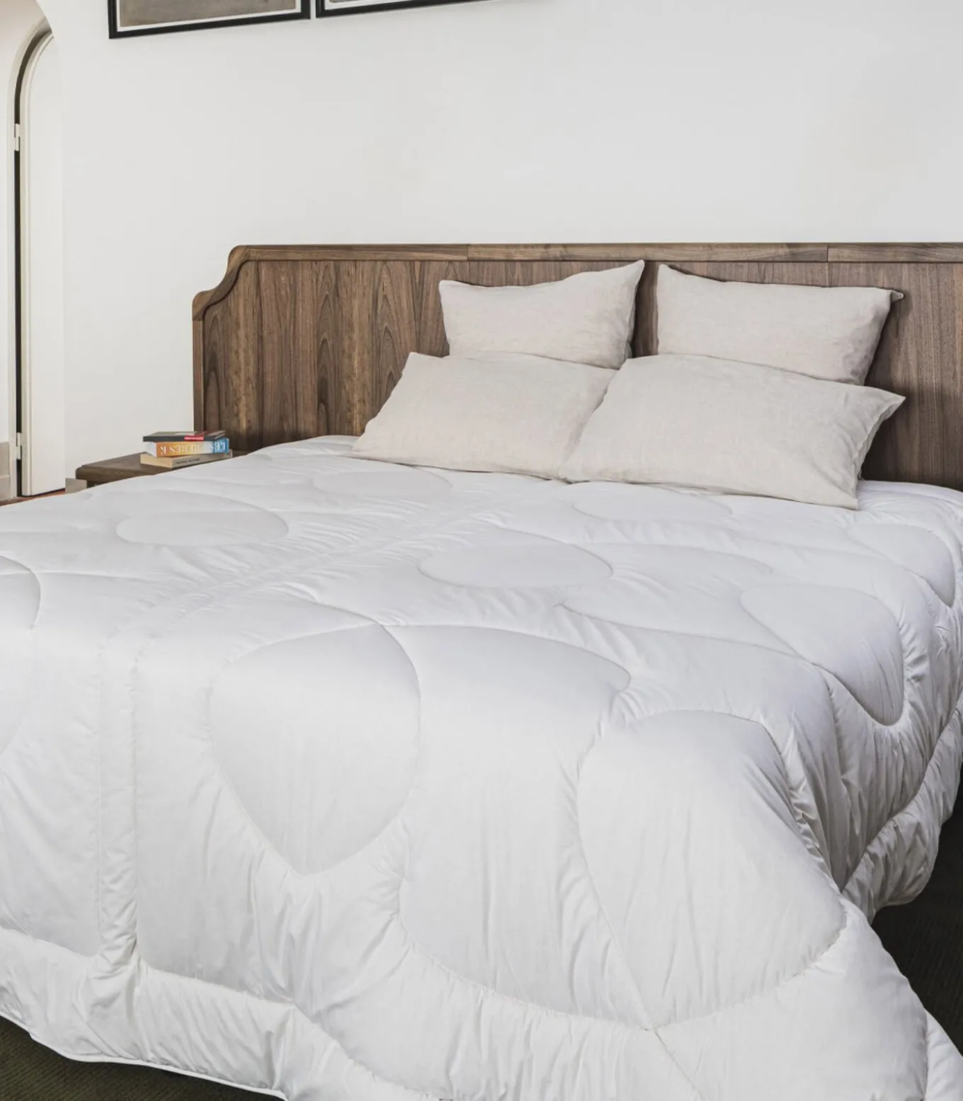 Dit dekbed is jullie idee: we hebben naar jullie verwachtingen geluisterd en dit wonder van comfort ontworpen voor de vele koppels die niet dezelfde koude voeten hebben. Daarom hebben we het gevuld met Alpine wol, zo ademend en zo comfortabel, op verschillende manieren: warmer aan de linkerkant, lichter aan de rechterkant… of het tegenovergestelde, de keuze is aan jou! Omring jezelf met welzijn op je eigen manier…