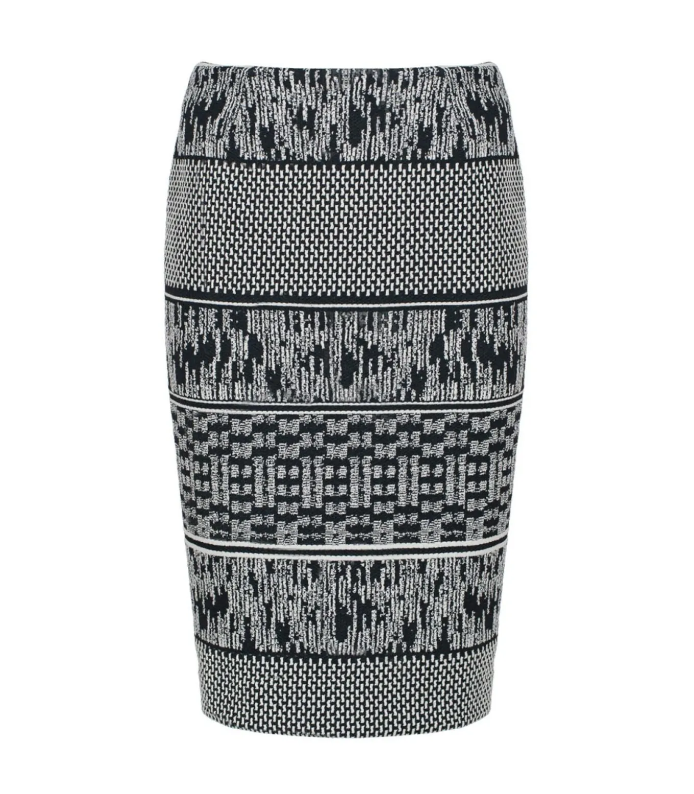 Verfijning ontmoet comfort met deze kokerrok tot onder de knie, gemaakt van hoogwaardige zakar–gabardine–stof. De rok heeft een opvallende luipaardprint, een verborgen ritssluiting aan de achterkant, een kleine split aan de achterkant voor bewegingsvrijheid en een aansluitende voering voor een onberispelijk silhouet. Gemaakt met een stofsamenstelling van 52% polyester, 41% katoen en 7% elastaan, biedt het duurzaamheid, ademend vermogen en stretch voor een comfortabele pasvorm. Deze rok is perfect voor formele en casual gelegenheden en combineert moeiteloos met een klassieke blouse of een strakke top voor een verzorgde en stijlvolle look.