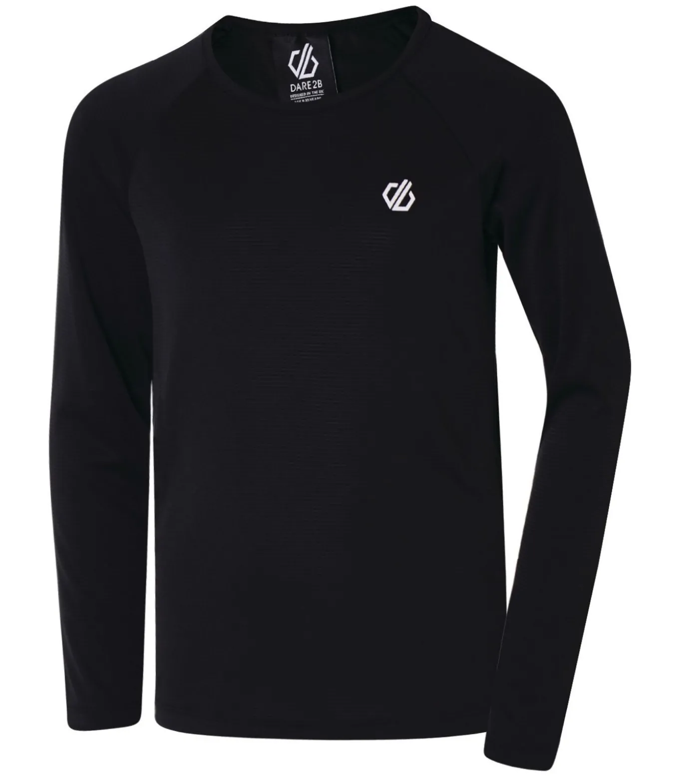 Dare 2B’s ELATE III basislaag is een zwarte pullover met geborsteld gerecycleerd polyester materiaal en een eenvoudig ontwerp waarin het merklogo is verwerkt. Het heeft langemuren, een crew neck hals, een pull over/pull on sluitingsmechanisme en verschilt door zijn lichte gewicht, antibacteriële eigenschappen, vochtafvoerendheid, geurcontrole, sneldroogheid, thermische capaciteit, chemie– en gifvrijheid. De schuifinhoud is aan zowel de bovenkant als de bodems toegepast. Dit kledingstuk past bij kinderen tussen 3 en 13 jaar: voor kinderen van 3 tot 4 jaar is het grootte 22,5 in., voor kinderen van 5 tot 6 jaar 24 in., voor kinderen van 7 tot 8 jaar 26 in., voor kinderen van 9 tot 10 jaar 28,5 in. en voor kinderen van 11 tot 13 jaar is het grootte 31 in.