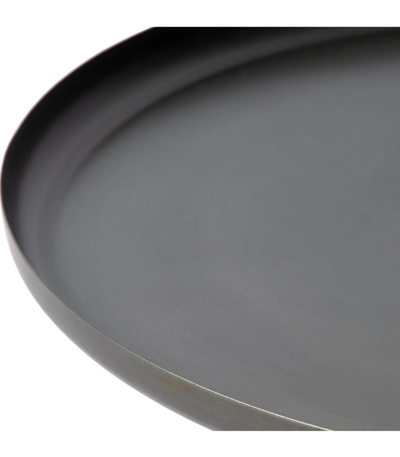 De metalen schaal Eleo in antique zink (diameter 34 cm, hoogte 2 cm) is een stijlvolle toevoeging aan je interieur. Met zijn subtiele design en veelzijdige formaat is deze schaal ideaal voor op een salontafel of dressoir. Perfect om te decoreren of als functioneel accessoire.