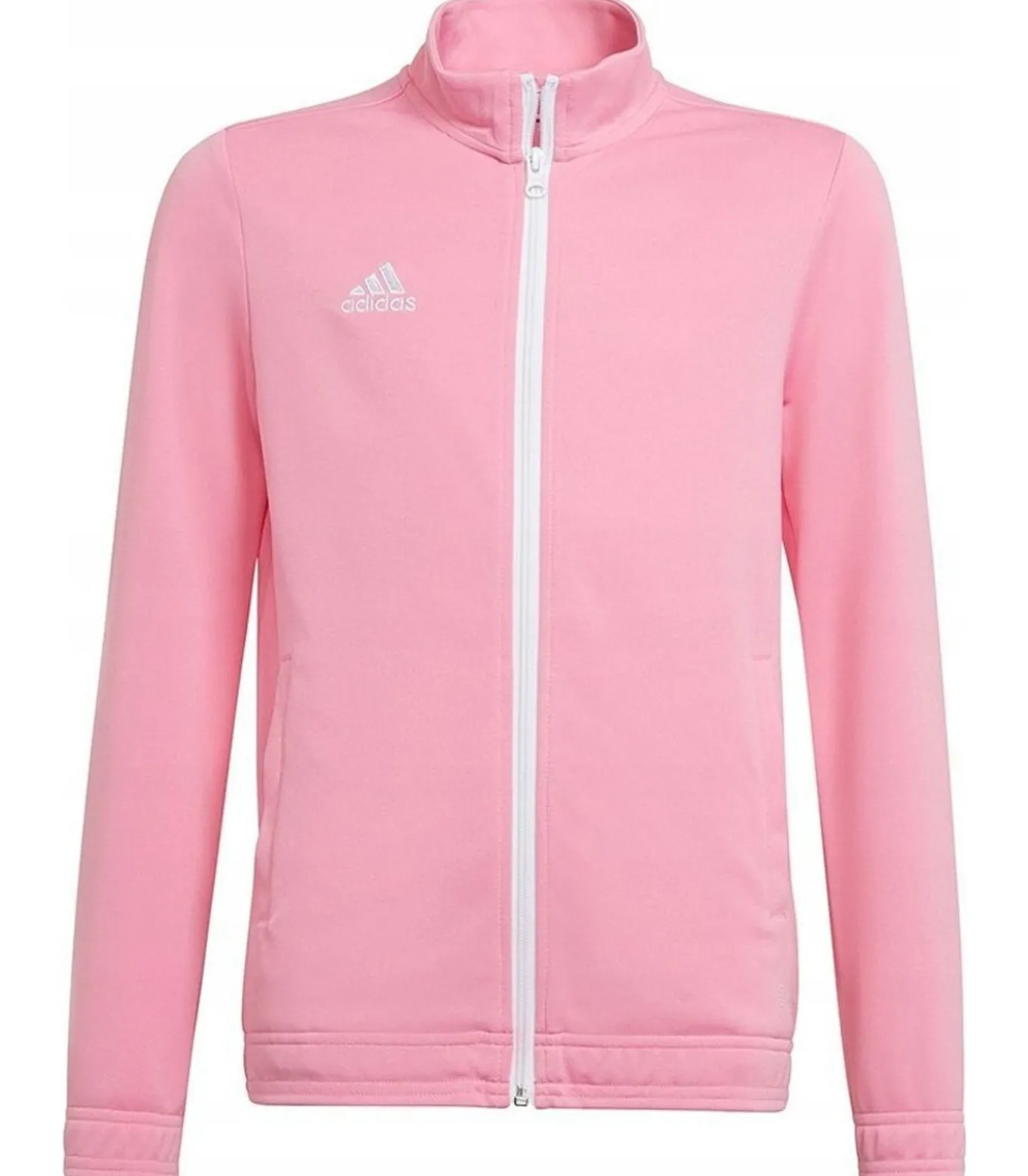 Adidas ENTRADA 22 – roze jasje gemaakt van 100% hergebruikt polyester. Het jasje heeft een dubbel gebreide stof, met een eenvoudig en eenvoudig ontwerp waarbij de logo’s centraal staan. De technologie van het stoffen gebruik is Aeroready, dat waterafstotend is. De manchetten zijn elastisch en de mouwen zijn lang. Het jasje heeft een halslijn met standaard kraag en is bedoeld voor slankere kinderen. Het bevat twee zijzakken en is geheel gemaakt van ritssluitingen. De afmeting omvat 31 inch voor kinderen tussen de 11 en 12 jaar en 34 inch voor kinderen tussen de 13 en 14 jaar.