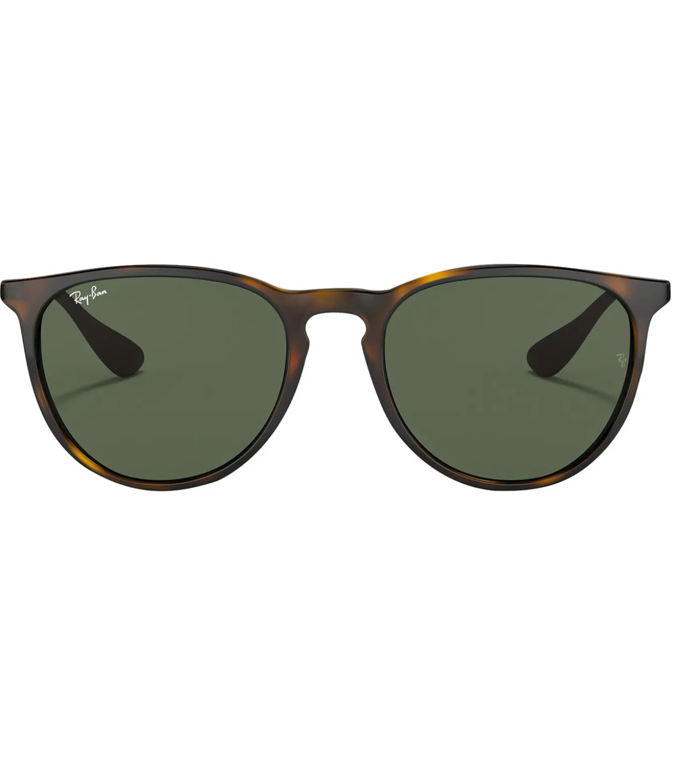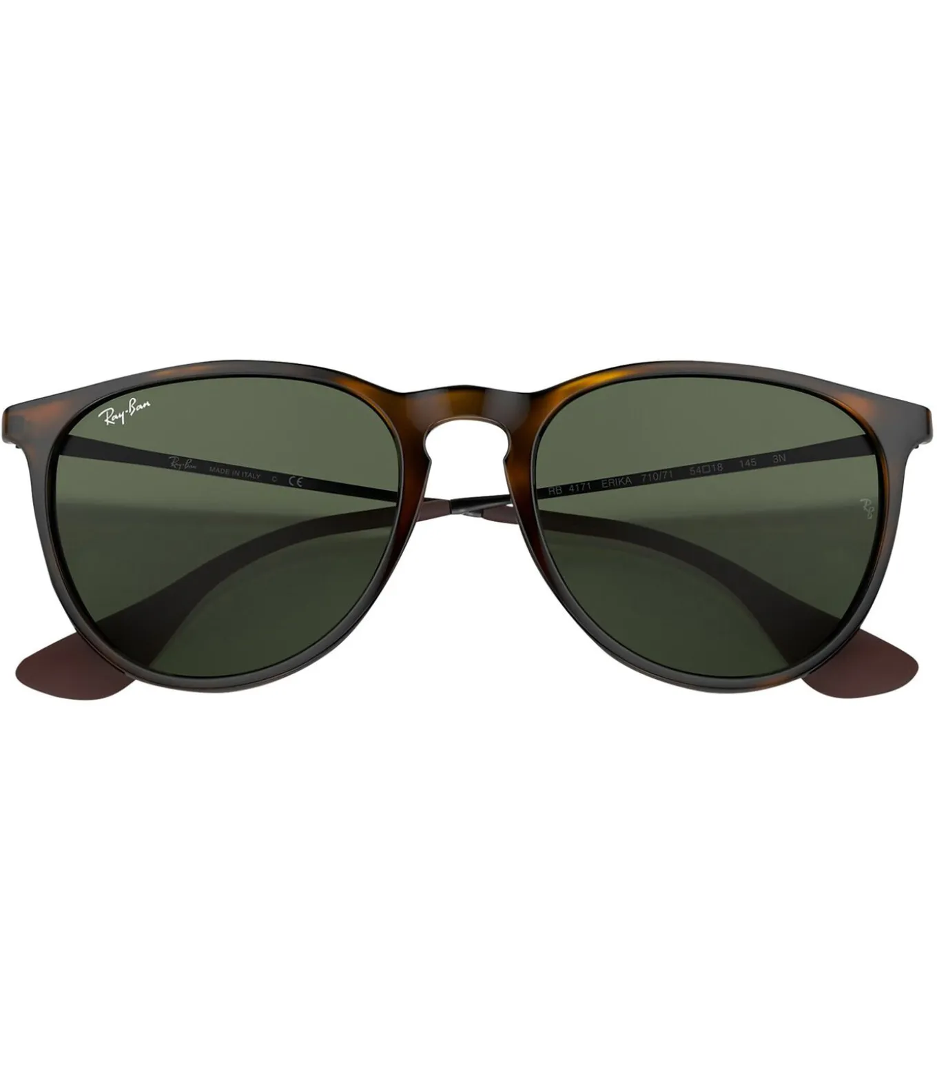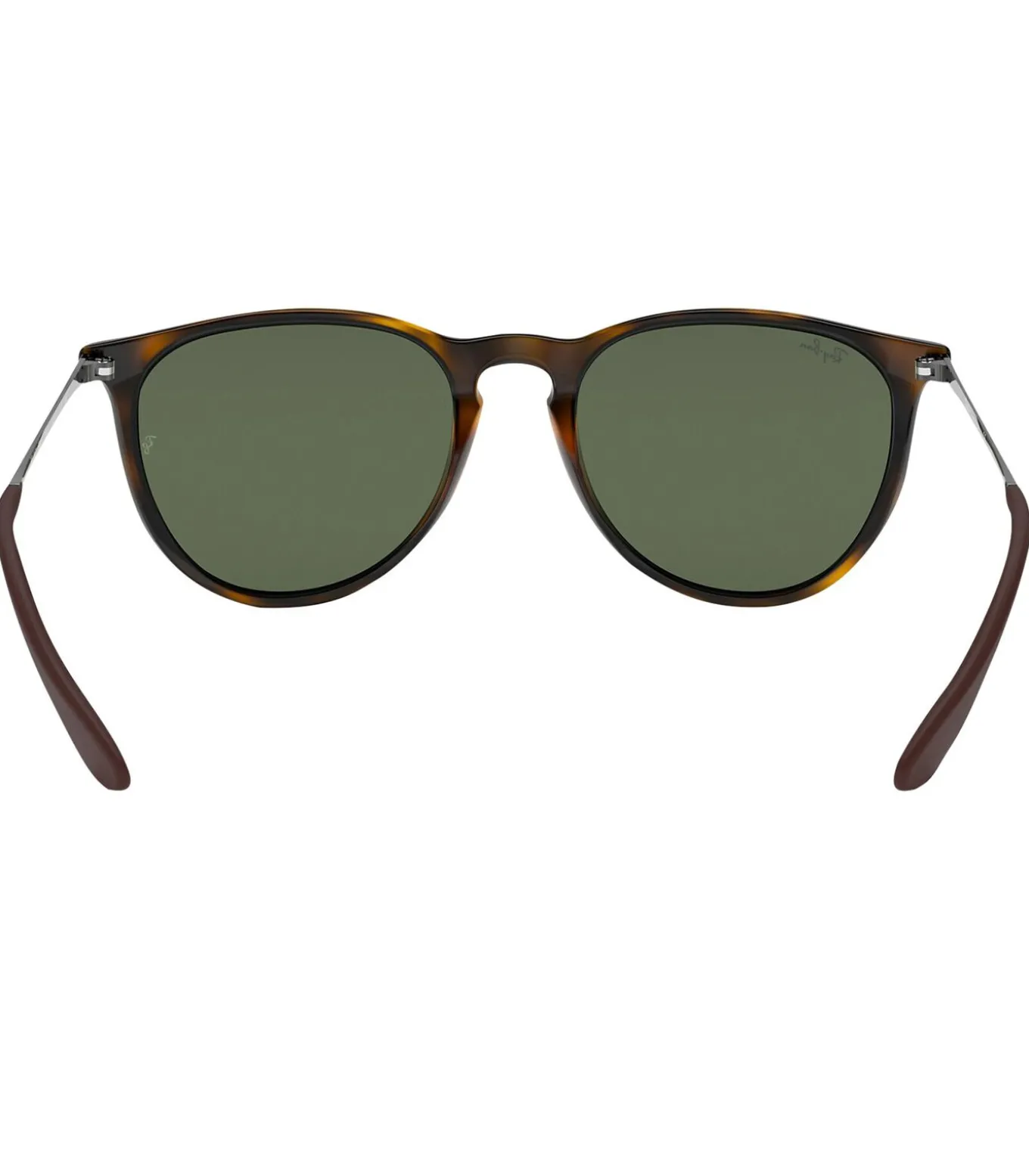 De Erika Classic–zonnebril van Ray–Ban wordt geleverd in de kleur licht Havana/donkergroen, met branding op lens en arm. Deze zonnebril heeft een Phantos–vorm, een gradiëntlens en een harde koffer.