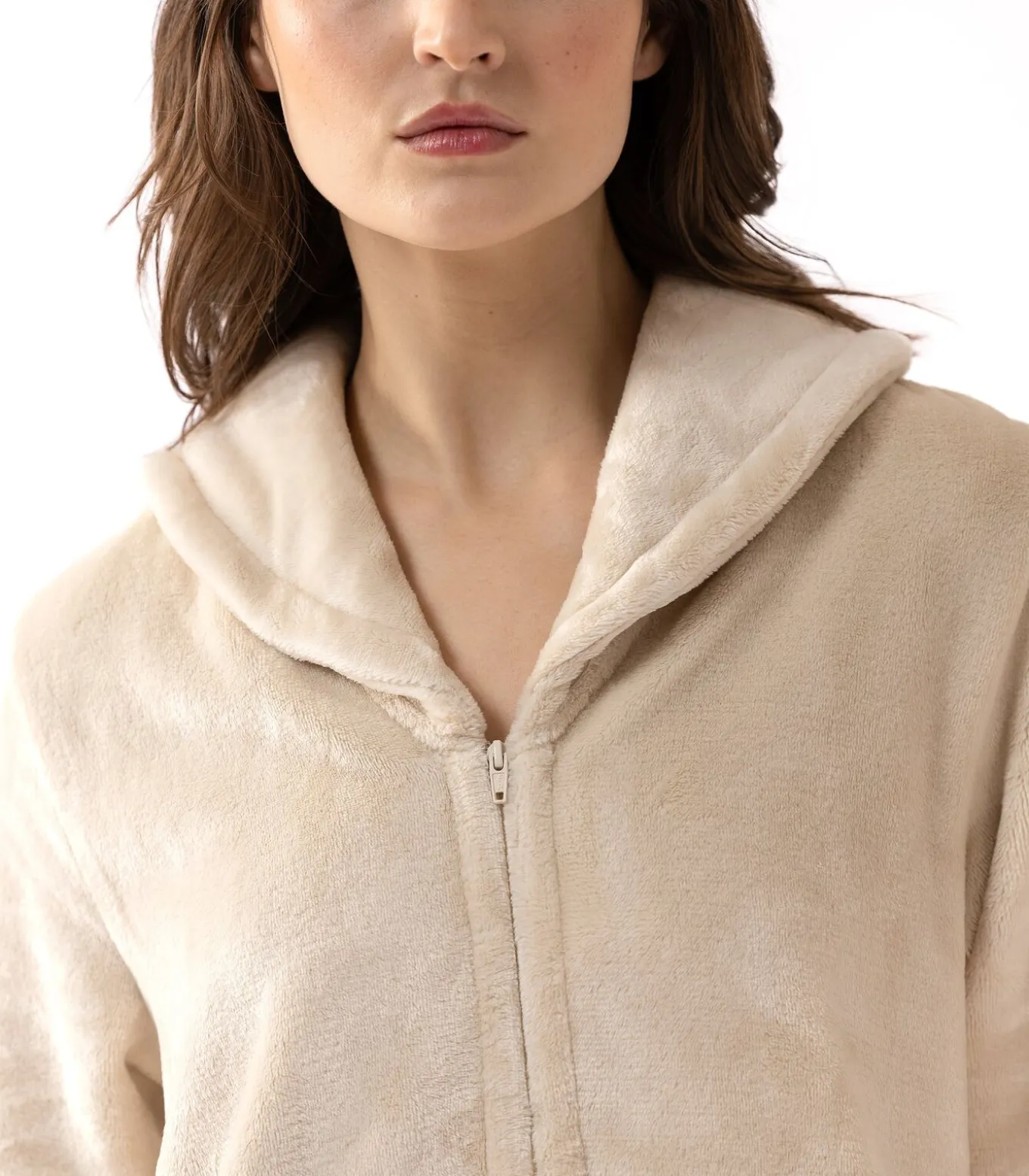 – Brede sjaalkraag met ritssluiting in het midden van de voorkant