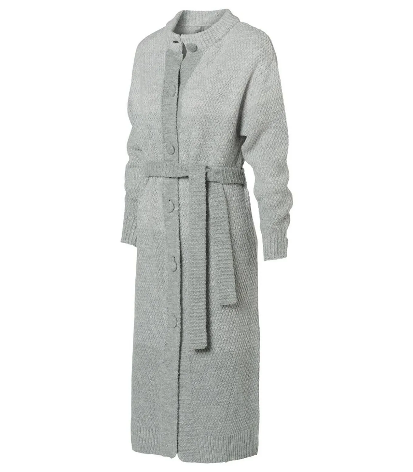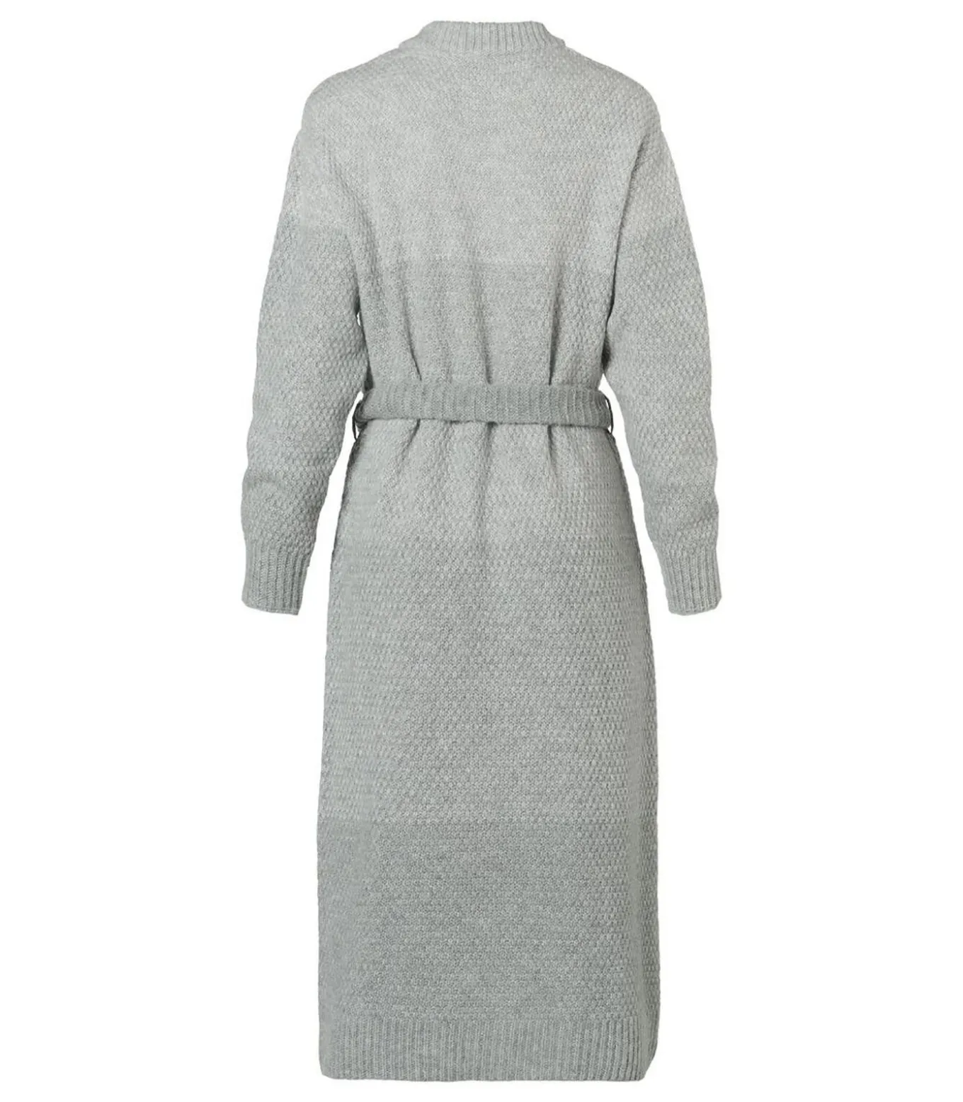 Breng elegantie en comfort samen met dit lange grijze vest uit de Mart Visser collectie. Het vest is gemaakt van een hoogwaardige, grofgebreide stof met een mooie structuur en een verfijnd ombre effect in vier zachte grijstinten, subtiel verfraaid met zilveren lurex voor een sprankelend accent. De opstaande col en brede ribboorden zorgen voor warmte en een stijlvolle uitstraling. De rechte pasvorm valt tot net op de kuit en geeft een moderne, nonchalante look. Dankzij de lange mouwen en de optionele strikceintuur kun je eenvoudig een vrouwelijk silhouet creëren. De blinde sluiting maakt het ontwerp minimalistisch en veelzijdig, ideaal om te combineren met zowel een zakelijke pantalon als casual jeans. De zachte, warme brei en de subtiele glans van het lurex maken dit vest een onmisbare toevoeging aan je garderobe.