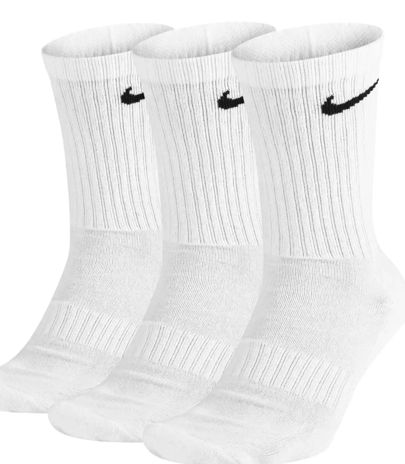 Nike Everyday Witte Zokken – Dit product is ontworpen door een van de meest beruchte sportmerkten ter wereld: Nike. Deze zokken zijn gemaakt uit katoen, nylon, polyester en polyurethaan. Het ontwerp van deze zokken is eenvoudig, met een afgewerkte Swoosh–logo op de buitenzijde. Het voeteistechnologie Dri–FIT garandeert dat uw voeten droog blijven tijdens sportieve activiteiten en het ondersteunen van de voetholte is toegevoegd om u te helpen in een gezonde postuur. Verder is deze sok beweringsvriendelijk en heeft een goede absorptie voor water, waardoor deze sok geschikt is voor bad en zwemmen. Deze zokken hebben een crew–snit.