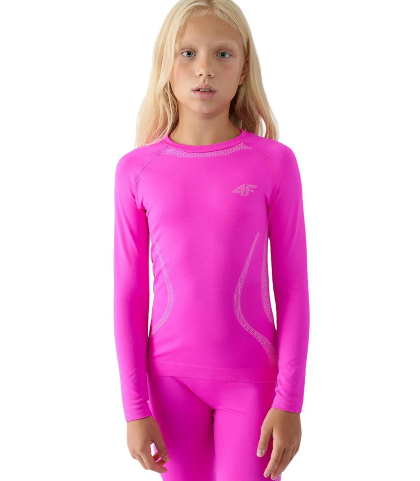 Dit product is een zwembroekje en topje combo uit de collectie van de merknaam 4F, F150 – basislaag – Roze. Het zwemkledingset bestaat uit een sterk en flexibel materiaal van 66% polyester, 30% polyamide en 4% elastaan. De vervaardiging is met rubber voor extra comfort en de huid draagbaarheid. Het material is synthetisch, stretch en waterdicht. Op het zwembroekje en topje zit een logo van het merk. Het ontwerp bestaat uit Raglan–mouwen met lange mouwen voor optimale bewegingsvrijheid. De hals is rond, geschikt voor iedere dagelijkse activiteit. Het zwembroekje en topje hebben 4F Skin Technologie, die thermisch en isolerend is om een optimaal comfort te garanderen. Ook is het onderhoudsvriendelijk en naadloos gemaakt voor een easy–care oplossing. Het zwembroekje en topje zijn enkel in lengte, met elastiek waistline voor een passende aanpassing. Het set bevat 1 zwembroekje en 1 topje. De zwaarste leeftijdsgroep is 13–14 jaar en de maat is 34,5 in. Voor de leeftijdsgroep 12–13 jaar is de maat 33 in. En voor de jongere groep van 10–11 jaar is de maat 30 in.