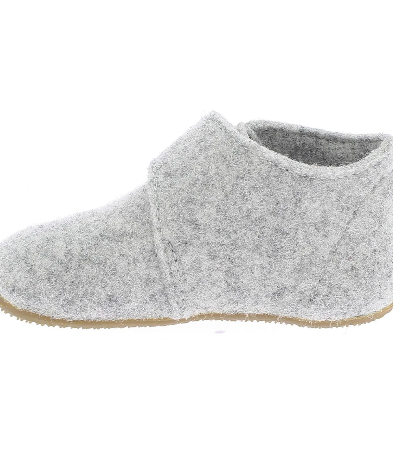 Deze klittenbandslipper van robuust vilt is de ideale metgezel voor avontuurlijke kinderen. De antislip, slijtvaste natuurrubberen zool zorgt voor een stevige ondergrond. De hoge schacht maakt de schoenen ideaal voor beginners en peuters. Ze zijn bijzonder gemakkelijk aan en uit te trekken dankzij de brede klittenbandsluiting. Zo comfortabel en flexibel dat ze aanvoelen alsof je op blote voeten loopt.