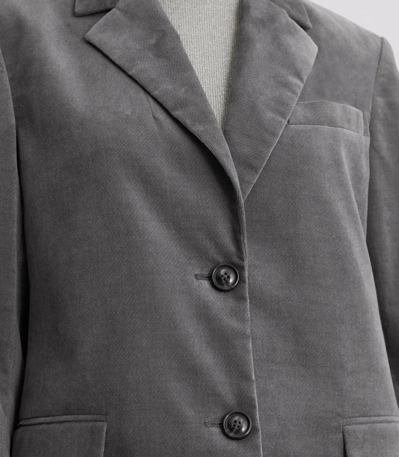 Jas en broek – fluwelen tweedelige pakken zijn nu een absolute modehit. De casual blazer is de perfecte garderobe essential voor de herfst en winter en vormt ook de beste basis voor deze trend. Naast de klassieke suitelook zijn er nog veel meer modieuze gimmicks mee mogelijk. De single–breasted blazer heeft een diepe V–hals, een revers, een borstzak en twee klepzakken en ronde stiksels. Een split middenachter en mouwsplitten met knopen zijn nog meer coole details. Onze tip: draag met de bijpassende fluwelen broek. De blazer is volledig gevoerd met viscose.