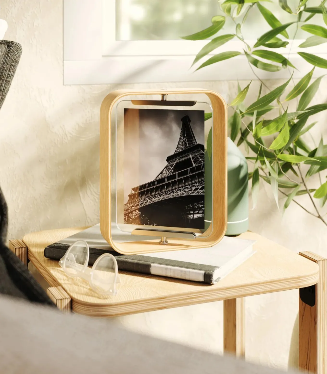 360 graden draaibaar: met zijn zachte rondingen, geïnspireerd op onze Bellwood collectie, draait deze bureaulijst naadloos en voegt zo een unieke touch toe aan je gebruikelijke fotolijst.