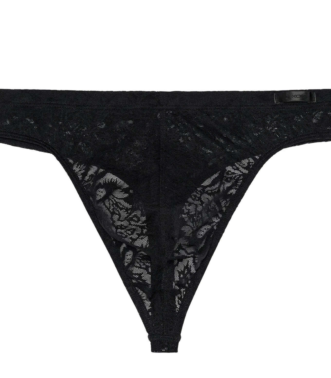 Deze herenstring van rekbaar kant met bloemmotief is opvallend en geraffineerd. Het semi–transparante oppervlak geeft hem een verleidelijke look, terwijl het rekbare materiaal een perfecte pasvorm en een hoog draagcomfort garandeert. De nauwsluitende vorm flatteert het figuur en creëert een stijlvolle look met een sensuele touch.