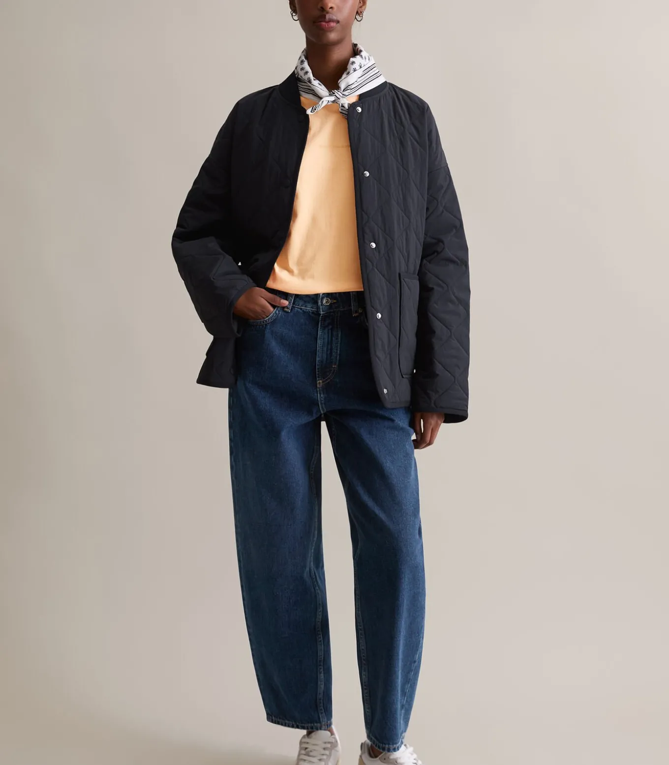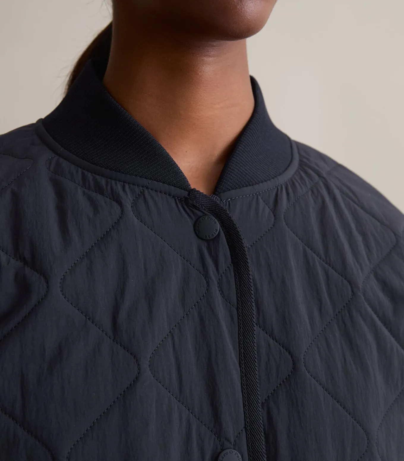 Dit casual, lichtgewicht gewatteerde jack van Marc O’Polo DENIM met “blouson–kraag” en kenmerkende afgeronde zoom met splitten aan de zijkanten kan het hele jaar door worden gedragen en is een investering die de moeite waard is. Het jack is gemaakt van waterafstotend crinkle nylon aan de buitenkant en heeft hoogwaardige Unifi REPREVE®–vulling aan de binnenkant. Dit houdt warmte goed vast, is vochtafstotend en voelt zacht en veerkrachtig aan. De tijdloze stijl heeft elastische randen, een praktische drukknoopsluiting, opgestikte zakken en nonchalante doorgestikte lijnen in een “uivorm”. De jas is gevoerd met een lichtgewicht basisvoering van gerecycled polyester.