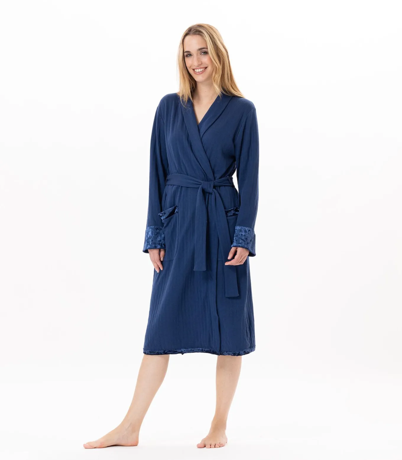 – RechtsonderLE CHAT is afgelopenMeng & Match van materialen: bovenkant van de zakken, onderkant van de mouwen en onderkant van de badjas geaccentueerd door een ton–sur–ton fluwelen ribboord.Hoe u de PILLOW 860 gewatteerde katoenen badjas draagtVan het laagseizoen tot de winter: de PILLOW 860 badjas is de ideale metgezel voor uw dagen en avonden. Hij past perfect bij de nachtjapon PILLOW 801 en de pyjama PILLOW 802.KUSSENlijnZacht, soepel en comfortabel: de gewatteerde katoenen jersey uit onze PILLOW–lijn is een lichtgewicht, gewatteerde dubbel gewatteerde stof.