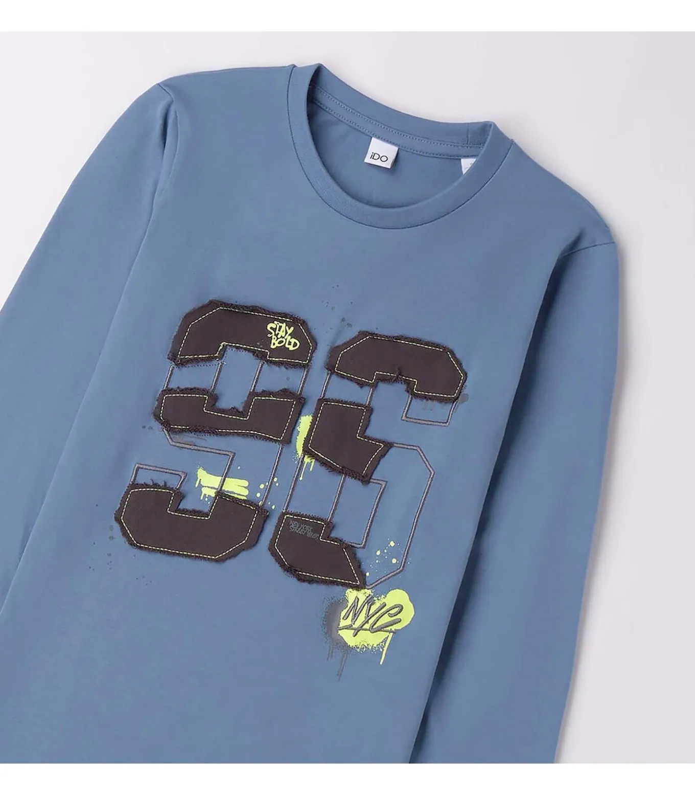 Kleur: Avion. Samenstelling: 100% katoen. Mouwen: lang. Halslijn: ronde hals. Details: T–shirt voor jongens van 8–16 jaar van geperforeerde katoenen jersey, met een print met borduursels en applicaties voor een originele en sportieve touch. Gebruik: ideaal voor school en vrije tijd, perfect voor casual looks met een dynamisch karakter.
