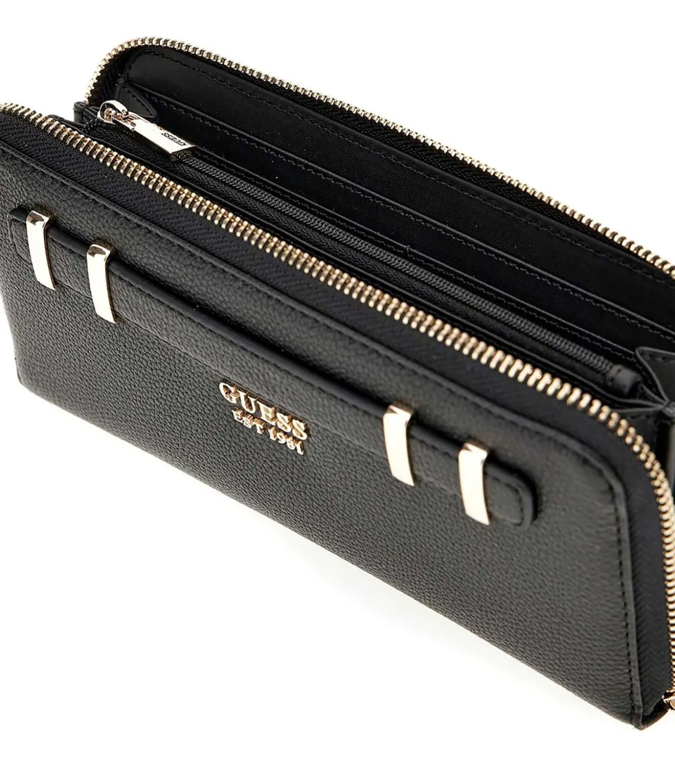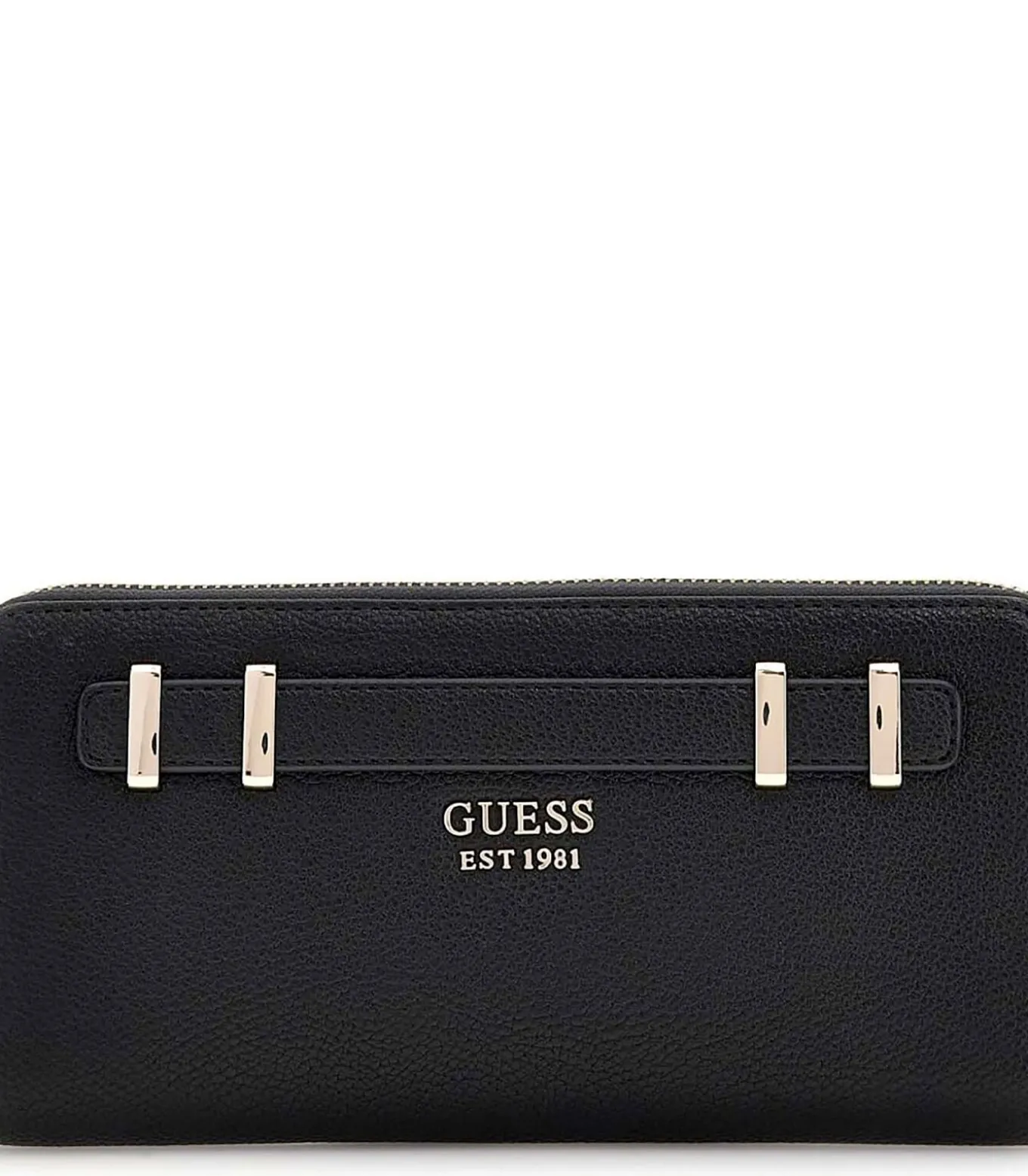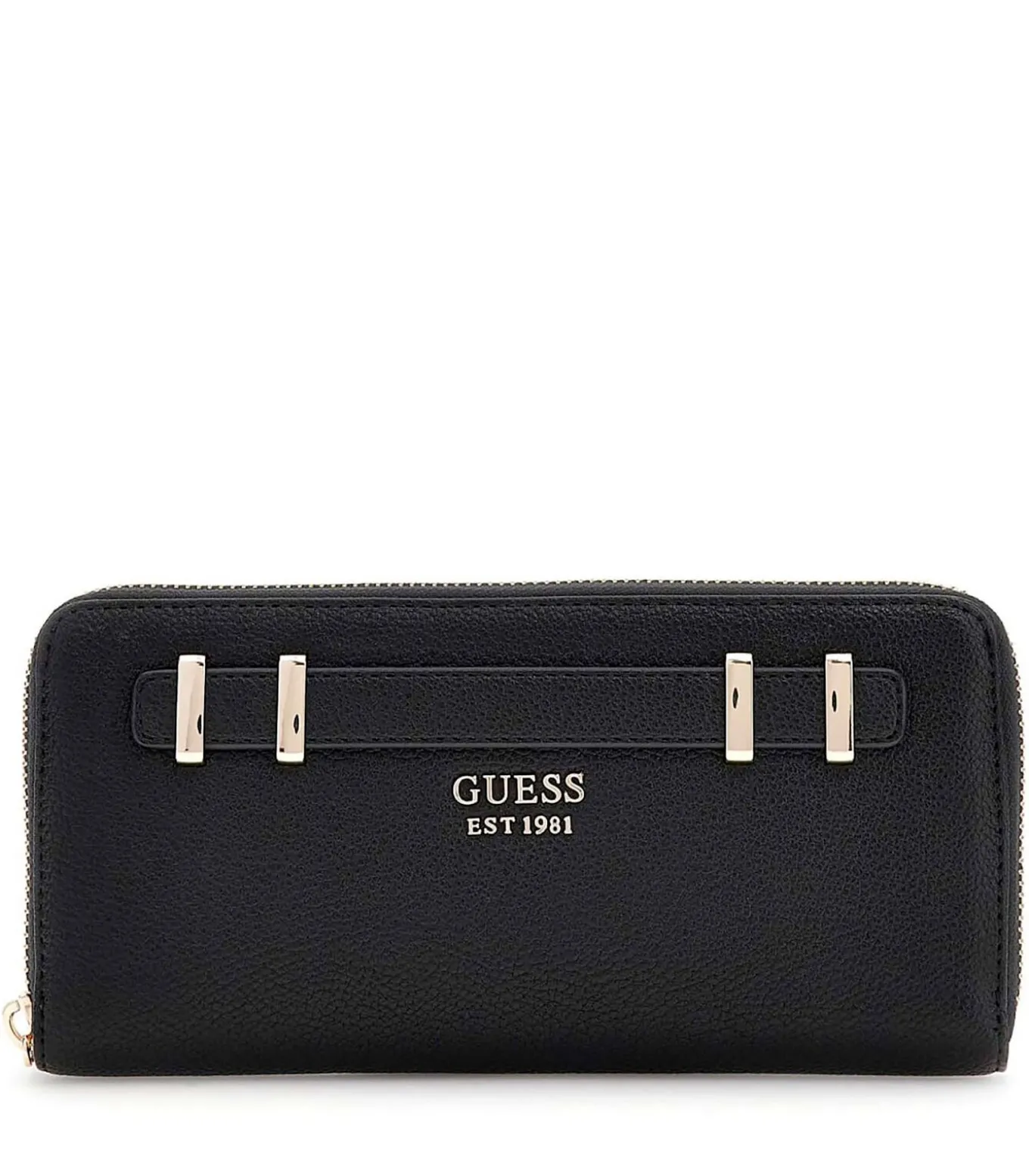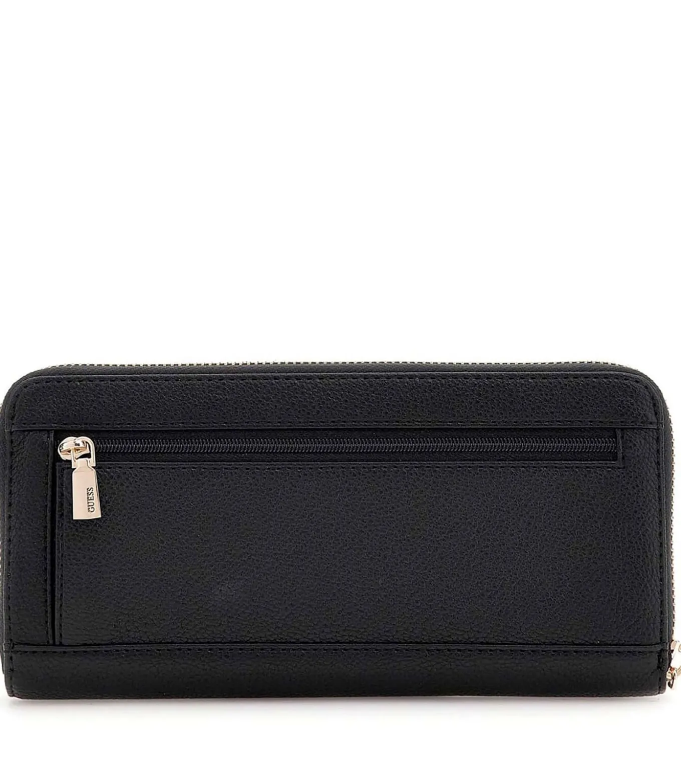 Kleur: Zwart Samenstelling: 100% Polyurethaan Sluiting: Rits Afmetingen: 20 x 10 x 2 cm Details: Gregoria portemonnee van eco–leer met metalen logo aan de voorkant en decoratieve metalen details Gebruik: Elegant en functioneel, perfect voor het stijlvol organiseren van kaarten, documenten en contant geld
