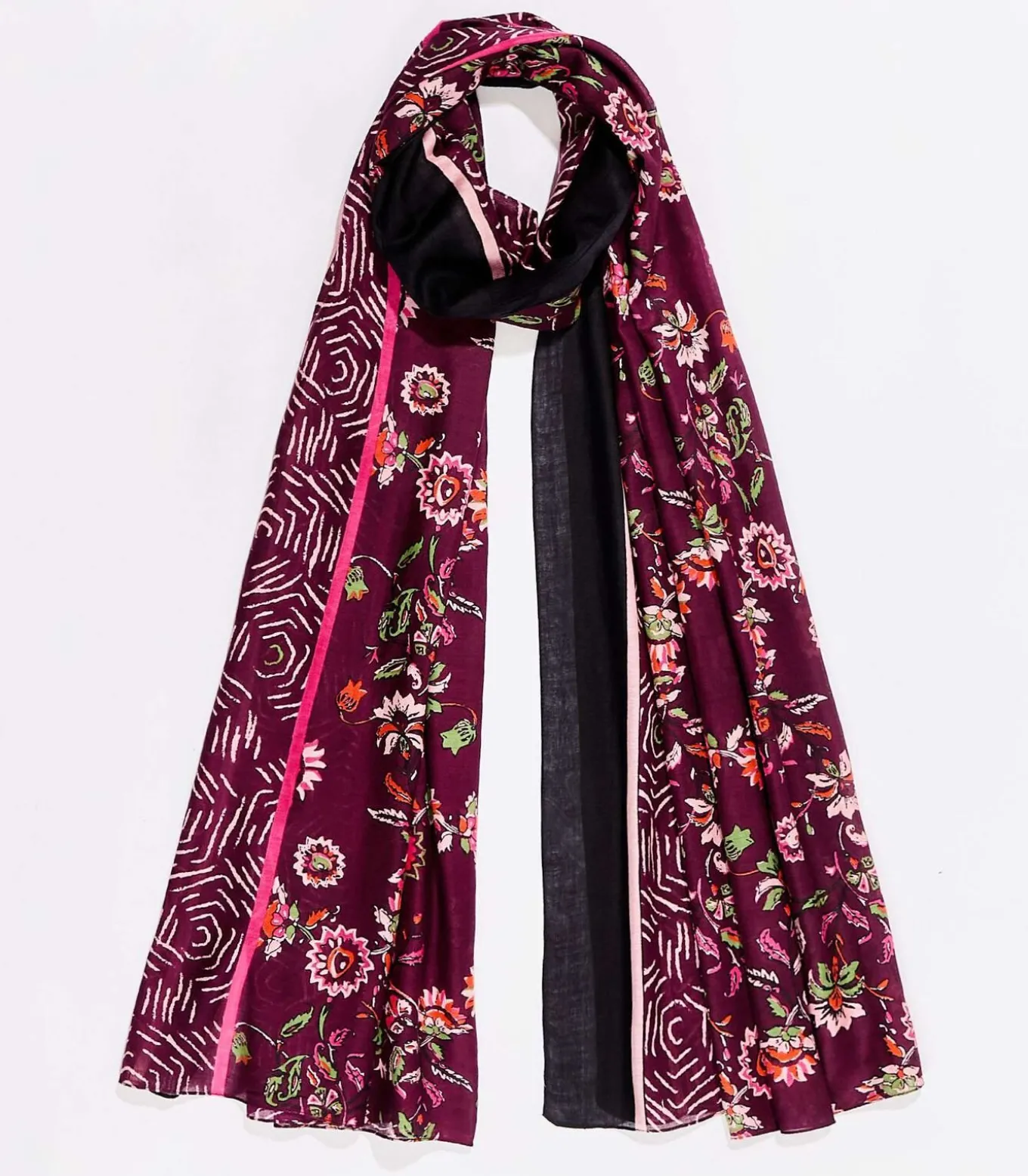 Grote rechthoekige sjaal van vloeiende en zachte LENZING™ ECOVERO™ viscose, ook origineel en kleurrijk om uw look een frisse touch te geven. Productdetails: grote vloeiende en soepele sjaal, LENZING™ ECOVERO™ viscose, afmetingen: 225 x 105 cm.