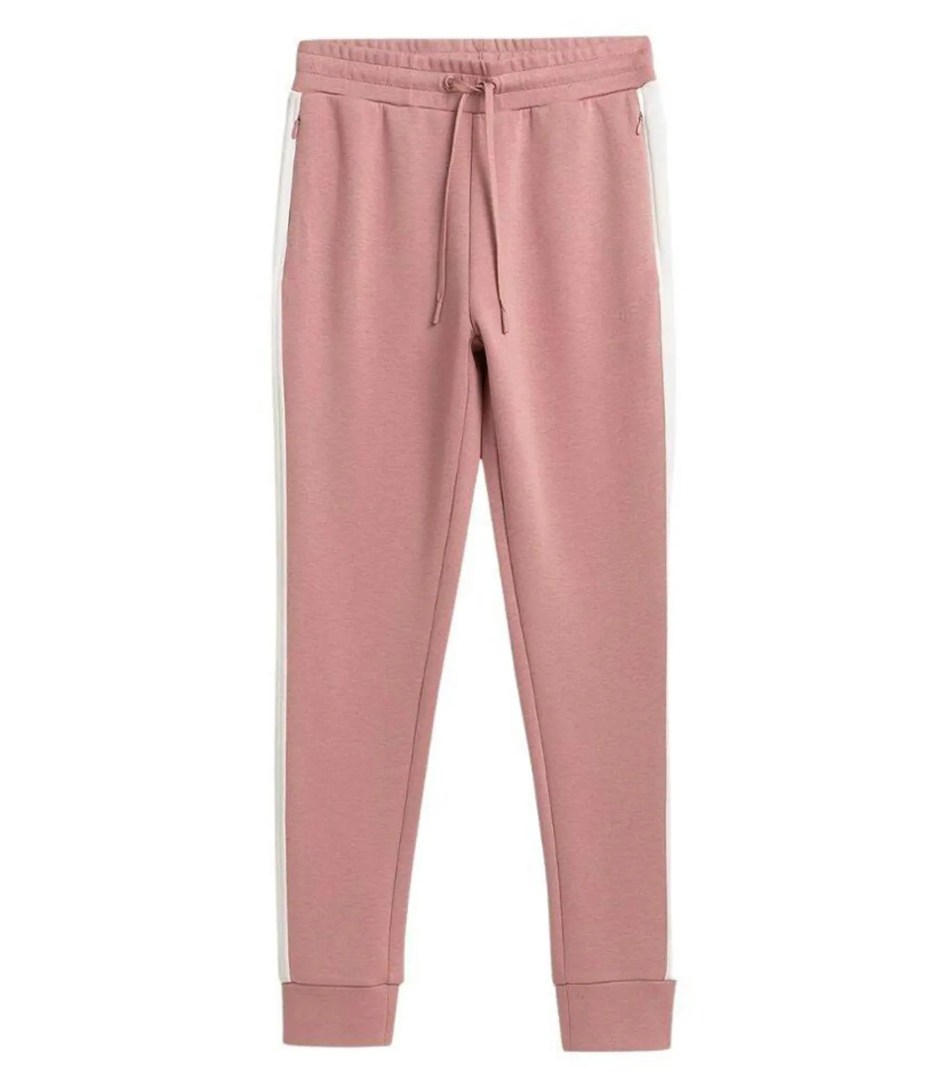 Joggingbroek model 4F, H4Z21 in roze kleur, geproduceerd door ons merk, is een praktische keuze voor iedereen die op sportieve manier wil optreden. Het joggingbroek is vervaardigd uit 75% viscose, 20% polyester en 5% elastane, zodat het comfortabel en stijf is. Het ontwerp is een contraststreep met een glad oppervlak. Deze jogging broeken kennen zacht stoftechnologie om u even comfortabel mogelijk te maken tijdens uw actieve levensstijl. De voeten worden voorzien van enkelboord, taps toelopende pijpen. Het joggingbroek heeft 2 zijzakken met ritzen om jouw persoonlijke itemen te bewaren. De tailleband is gemaakt van koord en elastisch om passend en gemakkelijk te zijn aan te trekken. Al in al een praktische keuze voor iedereen die sportief actief wil blijven.
