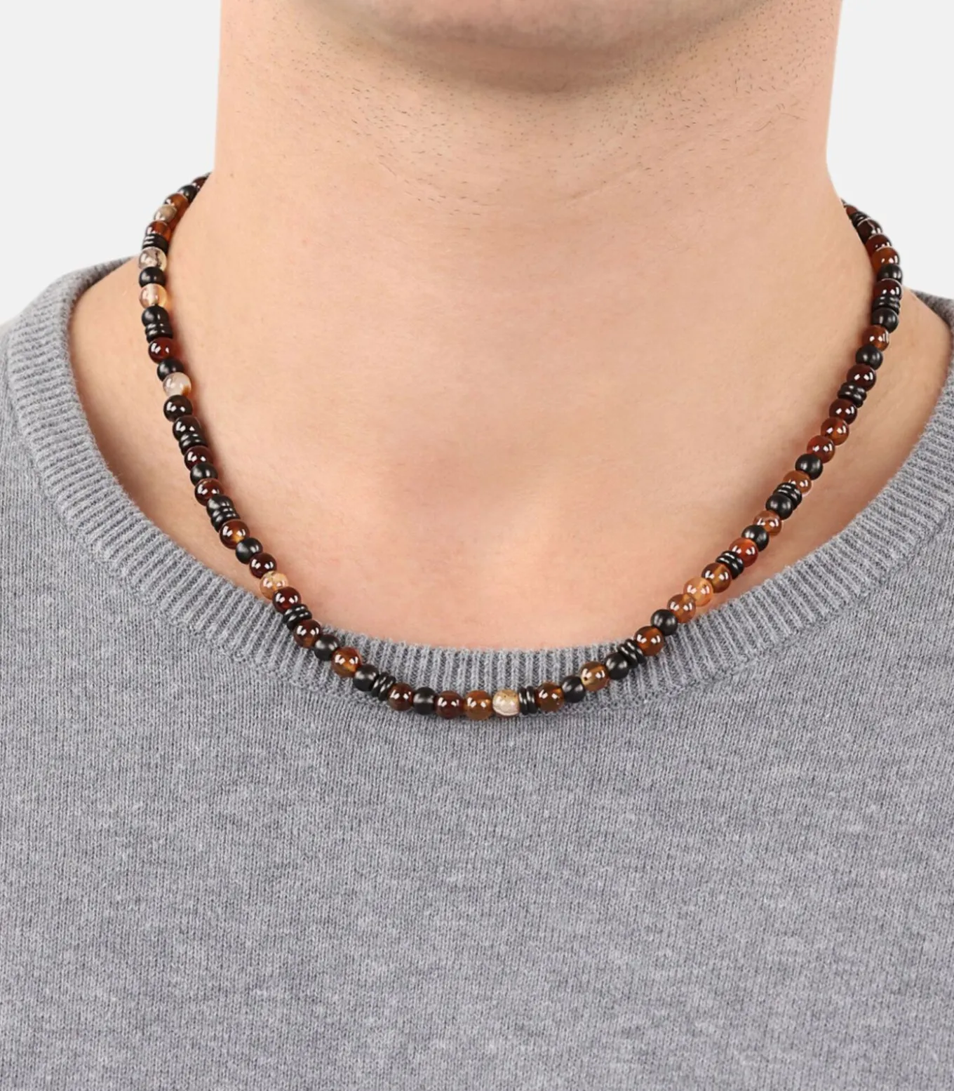 Be the first to review “Halsketting voor mannen, roestvrij staal, stalen kralen, agaat” Reactie annuleren