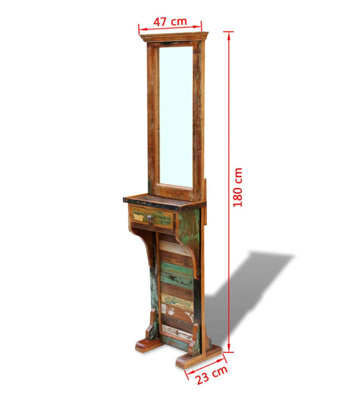 De vrijstaande houten spiegel kan ook worden gebruikt als een badkamerspiegel of als make–up spiegel.