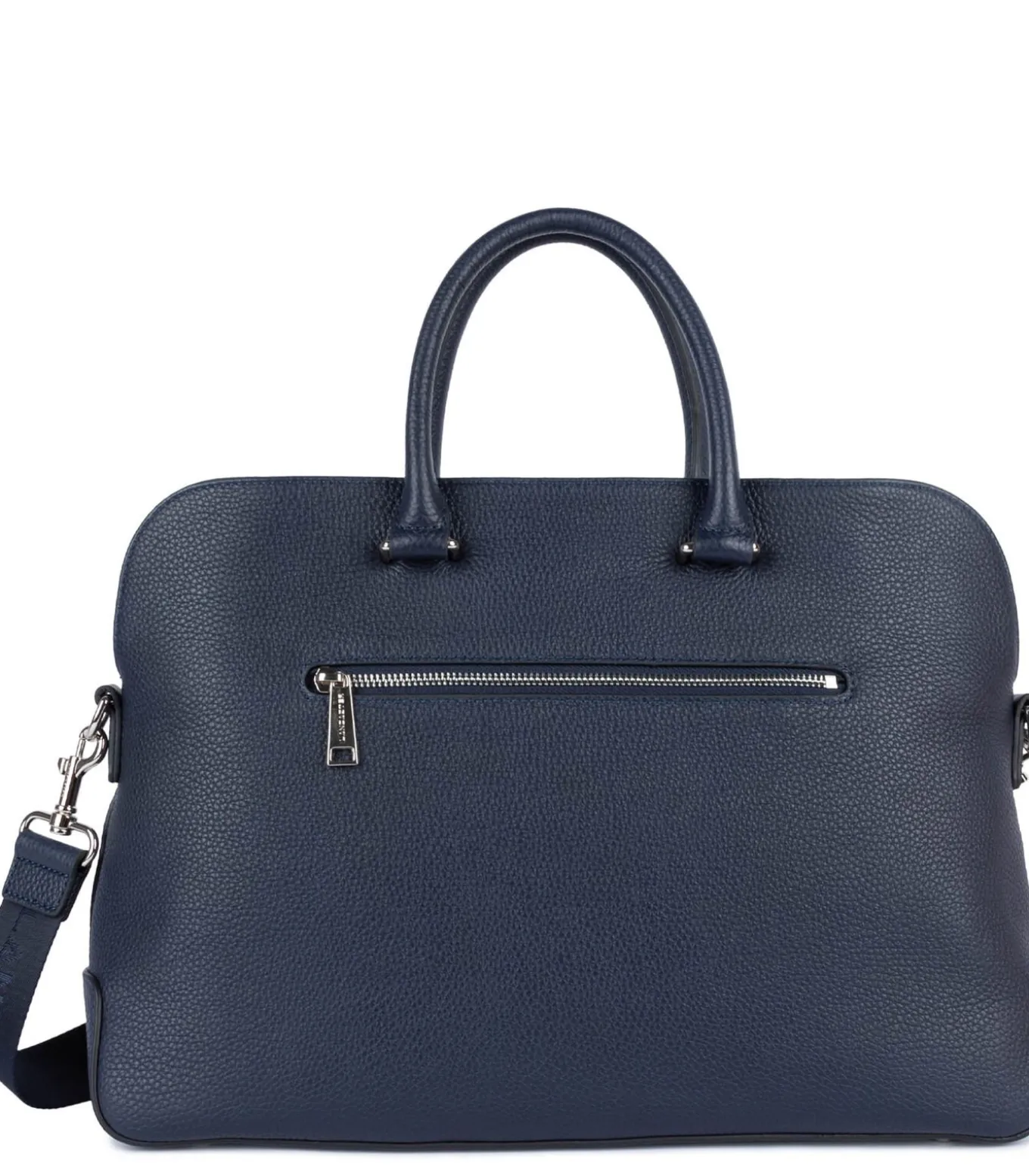 Deze handshopper is gemaakt van generfd rundleer. Ze heeft een voorvak met ritssluiting, een achterste buitenvak met ritssluiting, twee eenvoudige magnetische vakken, een dubbele eenvoudige binnenzak en een binnenvak met ritssluiting. Ze kan in de hand, over de schouder of crossbody worden gedragen.