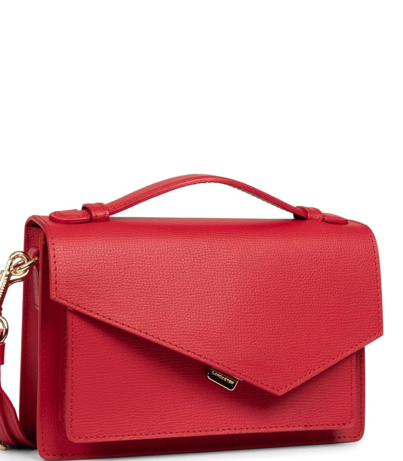 Deze nieuwe ZoéxLancaster handtas is gemaakt van generfd rundleer. Hij heeft een grafische flap aan de voorkant met een buitenvak, een enkel binnenvak en een binnenvak met rits.