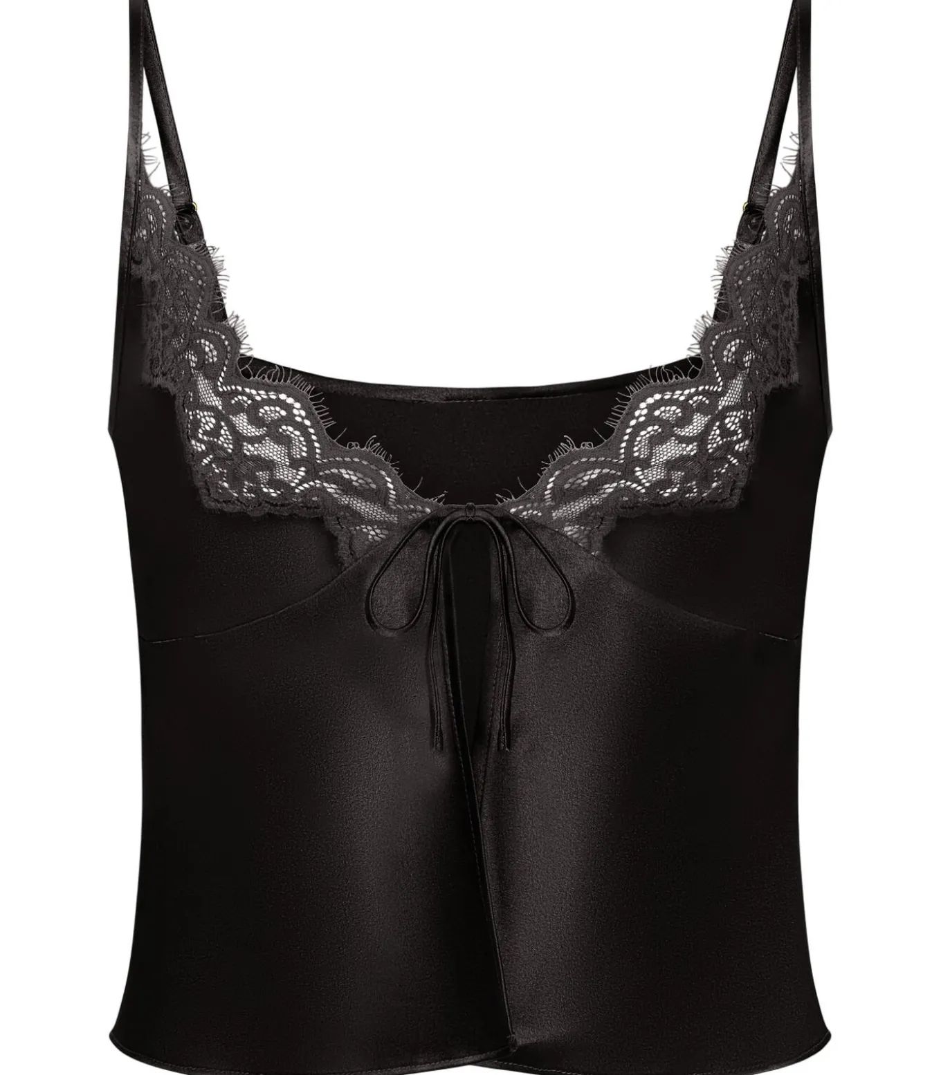 Dit delicate en moeiteloos chique cami hemdje is ontworpen om een vleugje romantiek toe te voegen aan je garderobe. De zachte, zijdezachte stof valt soepel op de huid en de striksluiting aan de voorkant zorgt voor een speels, verstelbaar detail. De kanten accenten langs de halslijn en zoom geven de look een vrouwelijke charme, waardoor hij perfect te combineren is met een bijpassende short.