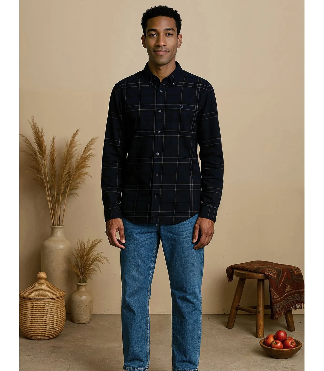 Dompel jezelf onder in elegantie en comfort met dit blauwe fluwelen herenoverhemd, geïnspireerd op de majestueuze Andes. Dit overhemd is gemaakt van 100% katoen en heeft een strakke, rechte pasvorm en een klassieke button–downkraag voor een extra vleugje verfijning. De lange mouwen en afgeronde manchetten zorgen voor een vleugje tijdloze stijl, terwijl het borstzakje en het geborduurde J&JOY–logo op de borst een vleugje functionaliteit en authenticiteit toevoegen. Het subtiele koord maakt de look van dit veelzijdige overhemd compleet. Bestel nu en voeg een must–have toe aan je garderobe.