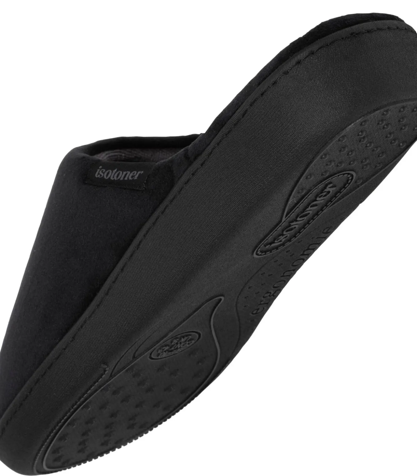 Een Isotoner klassieker waar je nooit op uitgekeken raakt: zwarte ergonomische muiltjes voor heren. Elk detail van deze slippers is ontworpen voor comfort en duurzaamheid. Het memory foam vormt zich naar de vorm van je voet en de ergonomische zool ondersteunt de voetboog voor optimaal comfort. Bovendien geeft de gebruikte ultrazachte, zijdeachtige microvelours deze muiltjes een elegante look. Deze herenslippers zijn machinewasbaar op 30°C.