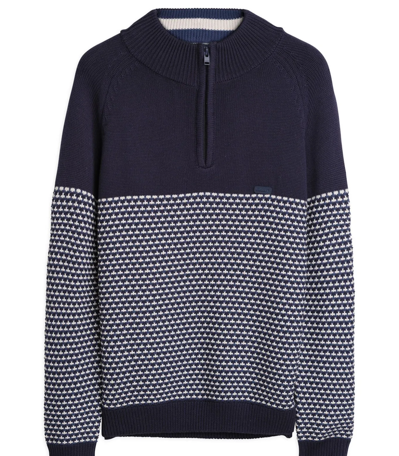 Kies voor stijlvol comfort met deze herentrui met twee texturen, geïnspireerd op de majestueuze Andes. Gemaakt van een mix van 60% katoen en 40% acryl, biedt deze trui zowel warmte als zachtheid. De normale pasvorm en opstaande kraag met rits geven een moderne touch, terwijl de geribbelde stretchboorden en manchetten zorgen voor een perfecte pasvorm. De lange mouwen garanderen extra warmte en het uitgewiste J&JOY–logo op het hart getuigt van de authenticiteit van het product. Combineer comfort en stijl met deze veelzijdige blauwe trui, perfect voor elke gelegenheid. Bestel nu en voeg een must–have toe aan je wintergarderobe.