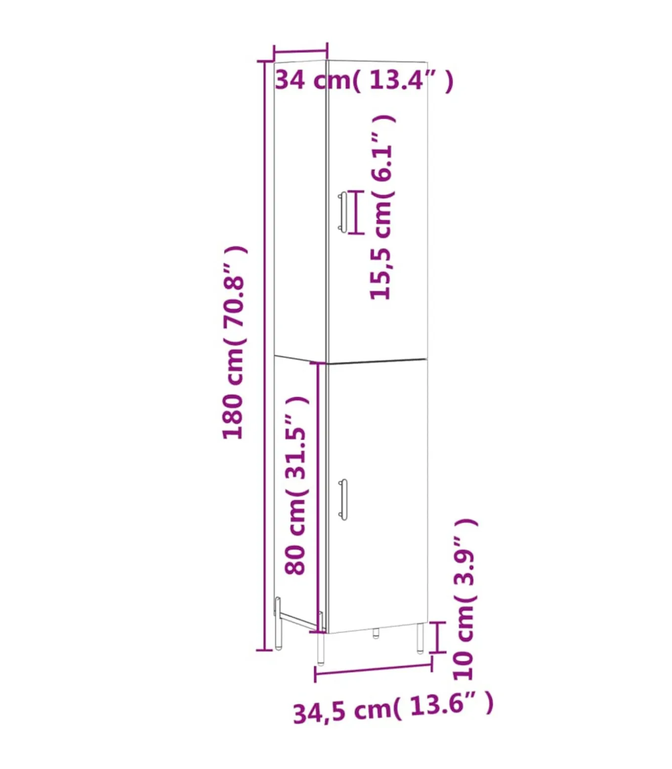 Afmetingen dressoir: 34,5 x 34 x 90 cm (B x D x H)