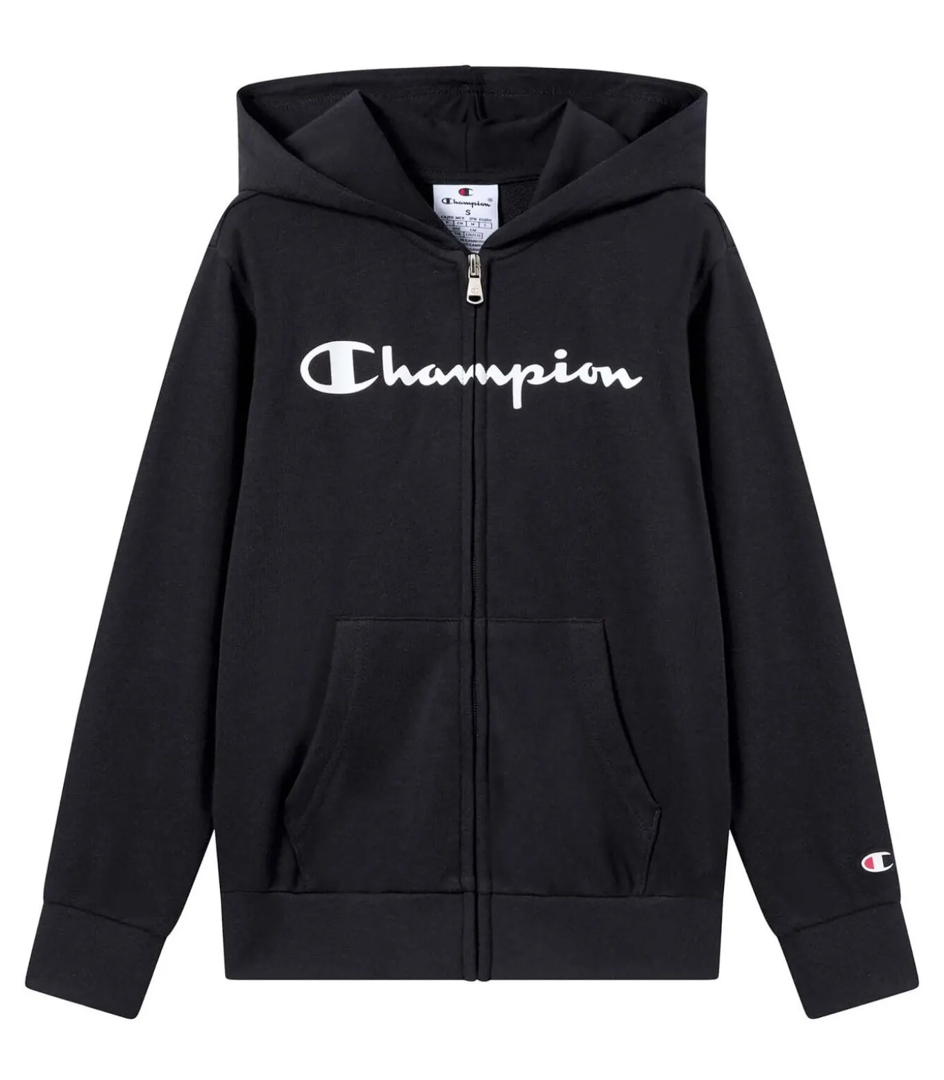 Kleur: Zwart Samenstelling: 55% katoen, 45% polyester Mouwen: Lang Halslijn: Capuchon Pasvorm: Standaard pasvorm Sluiting: Volledige ritssluiting Details: Sweatshirt van een katoen–polyestermix met verstelbare capuchon, voorzakken en logoprint op de borst. Klein geborduurd logo op de mouw voor een onderscheidende touch Gebruik: Perfect voor vrije tijd en school, combineert comfort met een sportieve stijl