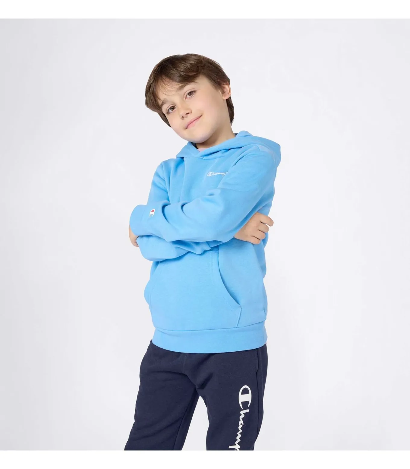 Kleur: lichtblauw. Samenstelling: 73% katoen, 27% polyester. Mouwen: lang. Pasvorm: standaard pasvorm. Details: capuchon; kangoeroezak; geborduurd Champion–logo op de borst; Champion–letters op de linkermouw; geribbelde manchetten en zoom. Gebruik: ideaal voor een sportieve en casual look, perfect voor vrije tijd en actieve dagen.