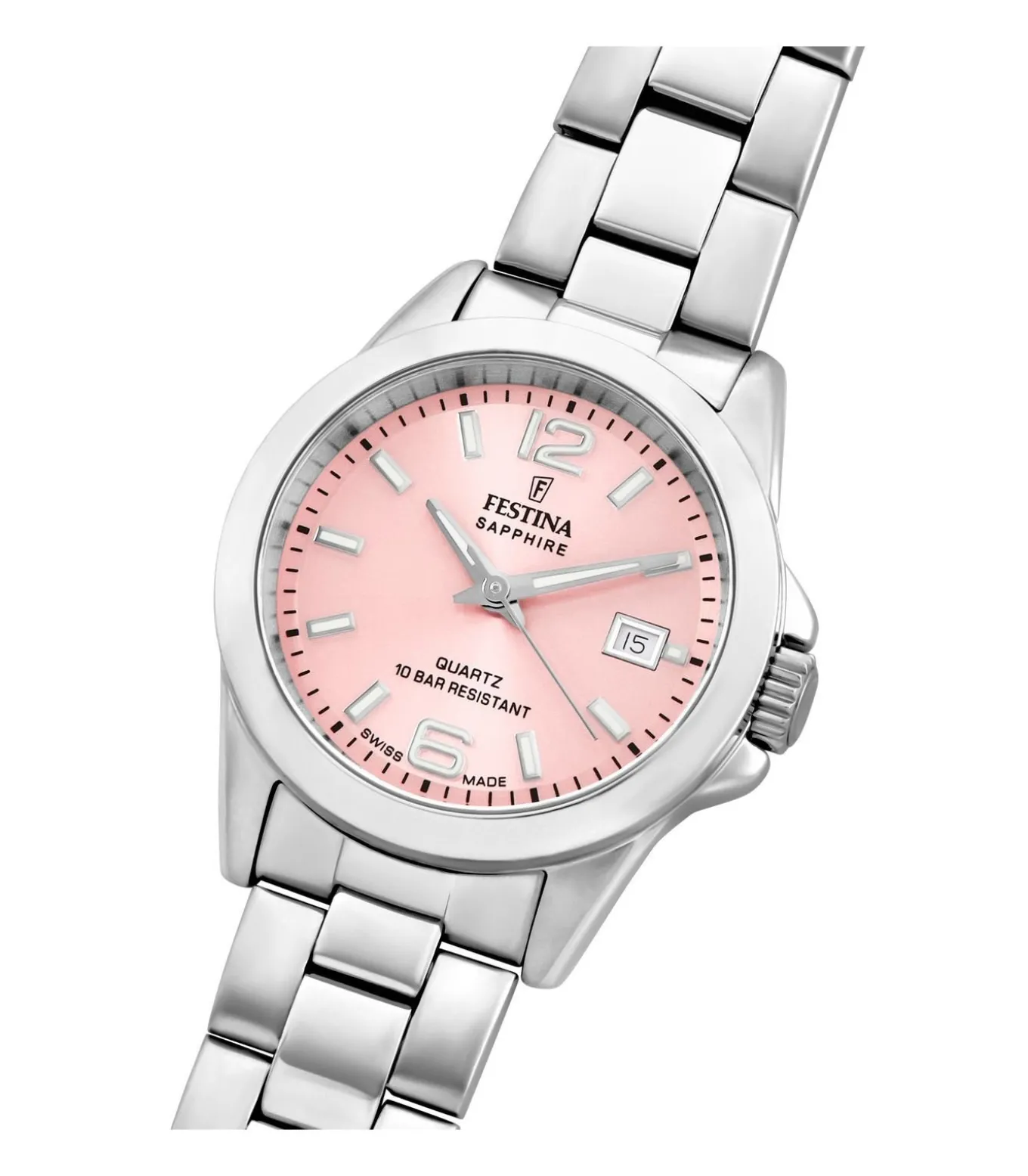 Festina Swiss Made dames horloge met een 316l roestvrij staal kast en een saffier glas met een 316l roestvrij staal band/armband. Dimensions: DIA.29.5/STRAP:0 mm, Material: Stainless steel