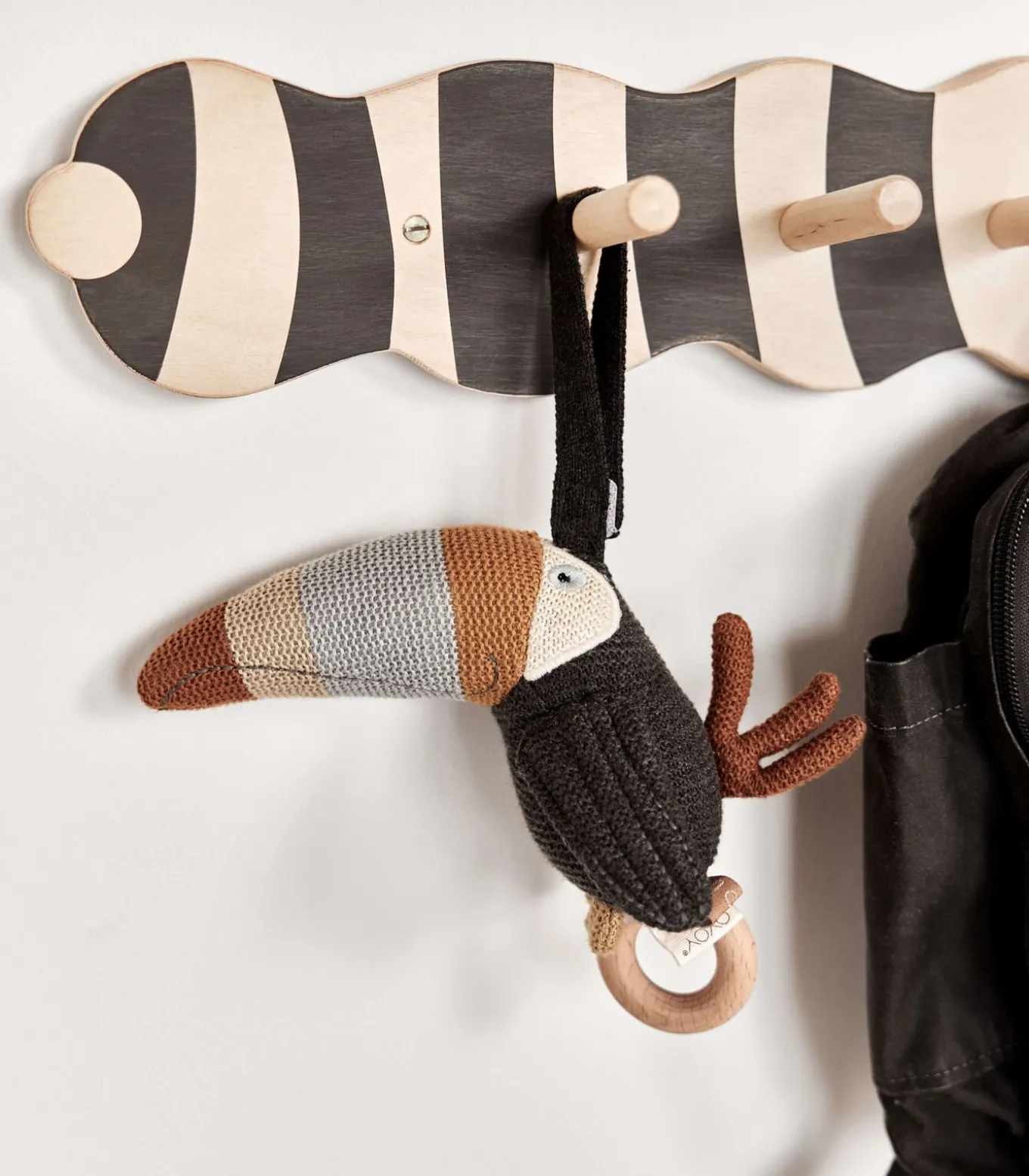 Een speels en functioneel stuk ontworpen met natuurlijke materialen. Deze Larva kapstok belichaamt niet alleen een grillig ontwerp, maar brengt ook oude vrienden van OYOY terug. Hij wordt verkocht met messing schroeven voor eenvoudige installatie en combineert naadloos speelse esthetiek met functionaliteit. Met een maximale belasting van 10 kg en 2 kg per haak is deze kapstok een perfecte mix van charme en functionaliteit.