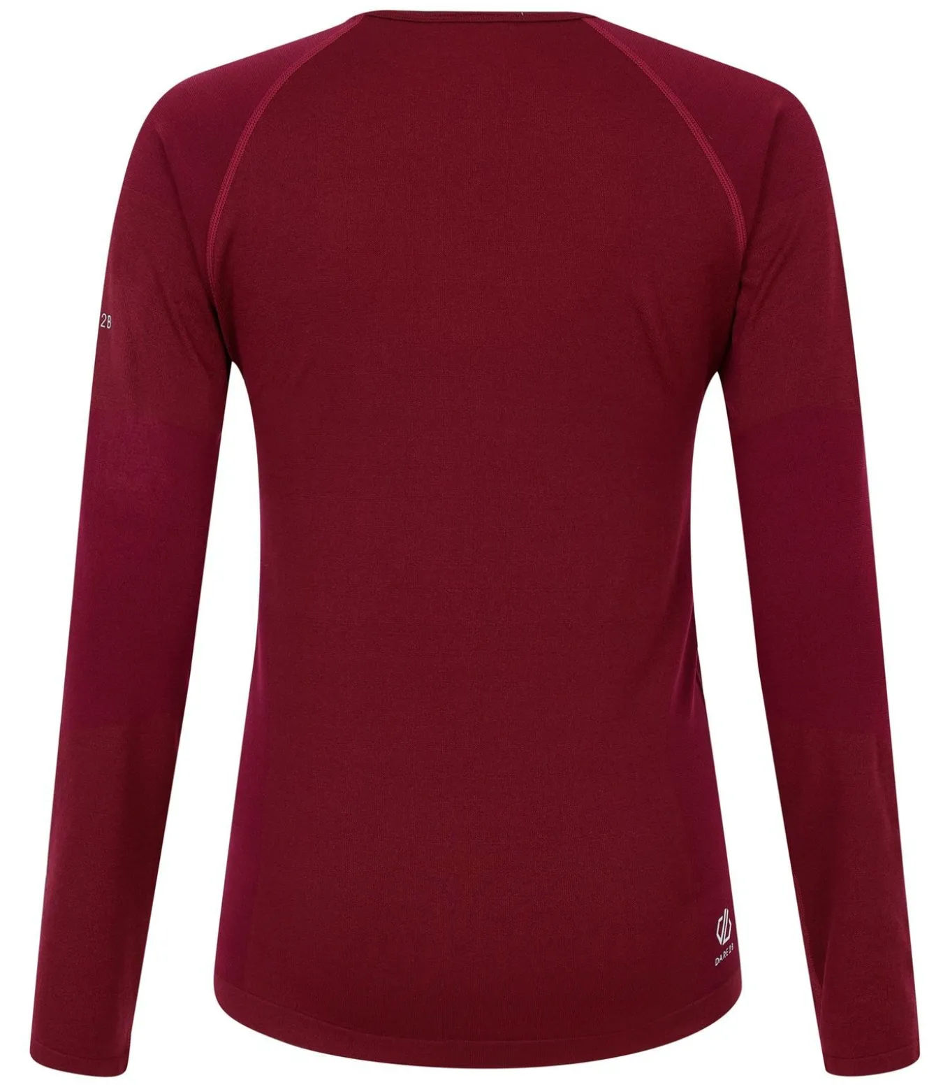 Dare 2B IN THE ZONE II basislaag Paars is een zwemtenuitrusting bestaande uit een broekje en een topje met performance stof en zacht aanraking, gekenmerkt door een eenvoudig ontwerp met het merklogo. Deze kleding heeft een crew neck hals, langarmen, pull–on beslAG, anti–bacteriële, ademend, chemievelvrij, duurzame, vochtafvoerende, geurcontrole en sneldrogende technologieën. Het product is ook voorzien van SeamSmart technologie en ventilatie. Deze naadloos gemaakte kleding biedt onbeperkte bewegingsvrijheid en heeft een pasvorm gebaseerd op de lichaamsvorm. Ook beschikt het product over elastieke waistline.