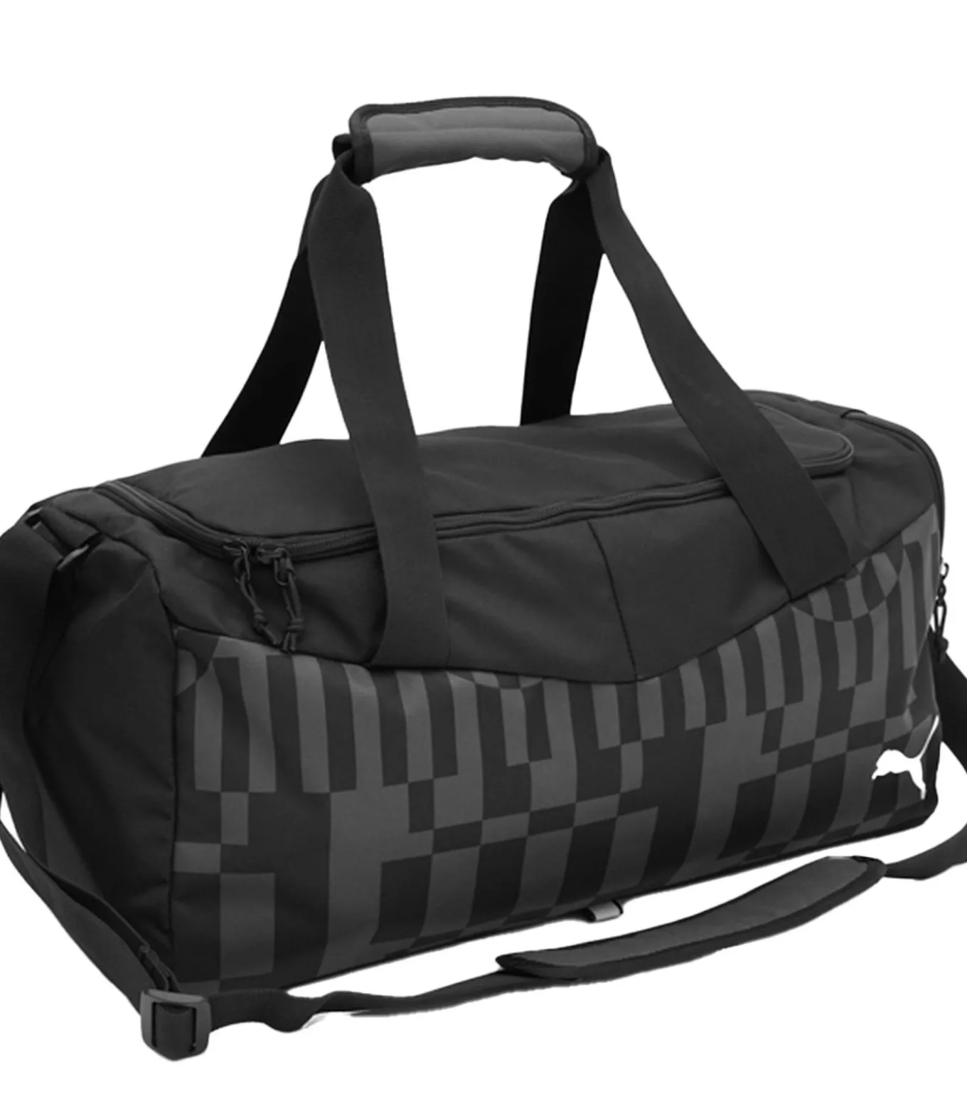 Puma’s INDIVIDUALRISE zwart Plunjezak is gemaakt van 100% Polyester en heeft een lengte van 46cm, een breedte van 23cm en een hoogte van 22cm. De zak heeft een capaciteit van 22L en beschikt over zijzakken en ritssluitingen. Het interieur telt één hoofdvak met rits en is uitgerust met verstelbare schouderriem en handvatten. De zak heeft duurzaam vochttechnologie. De design–elementen zijn een Puma–logo, gedeelde tekeningen, reflecterend detail en tweekleurig.