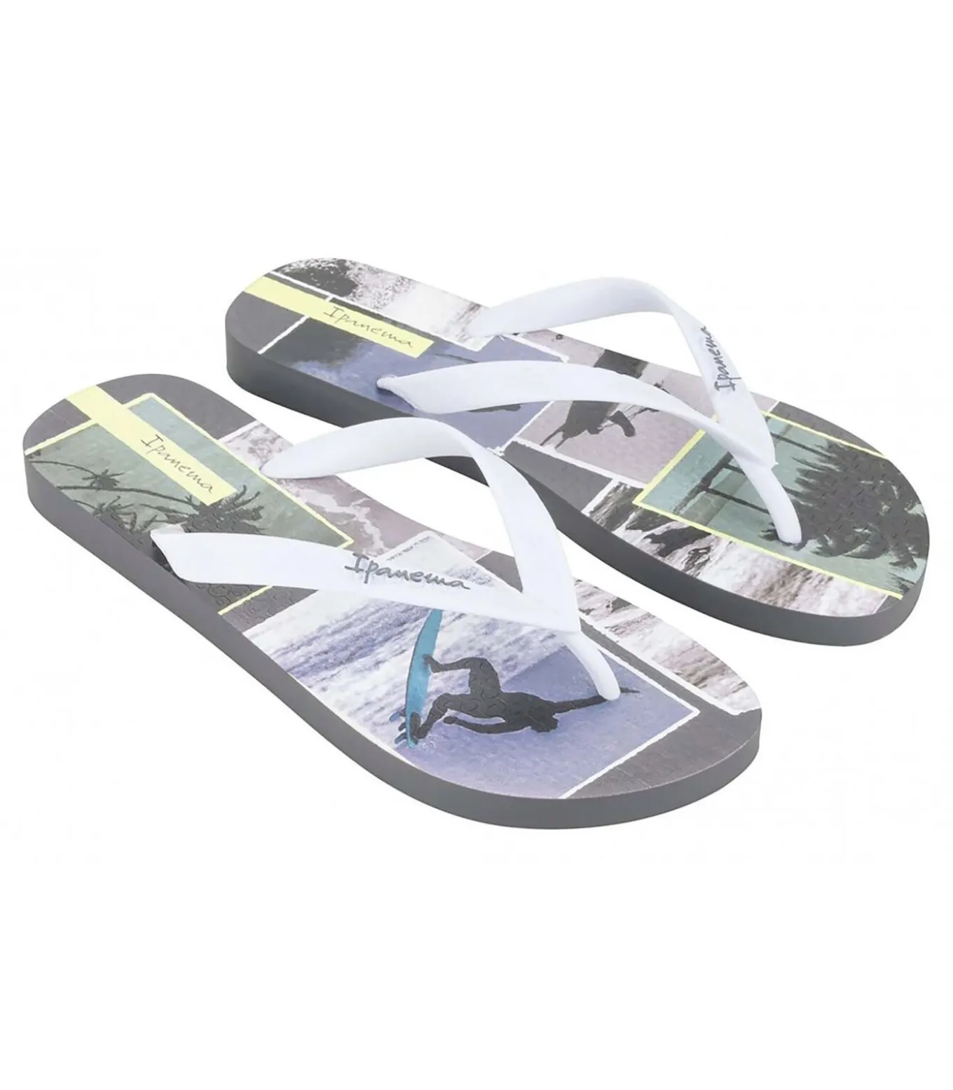 * Kleur: Multicolor * Details: Fotografische collageprint met een surfthema, witte banden met golvende textuur en contrasterend Ipanema–logo * Gebruik: Ideaal voor wie de energie van de zee en sport wil meenemen naar momenten van ontspanning, perfect voor het strand, het zwembad en vrije tijd.