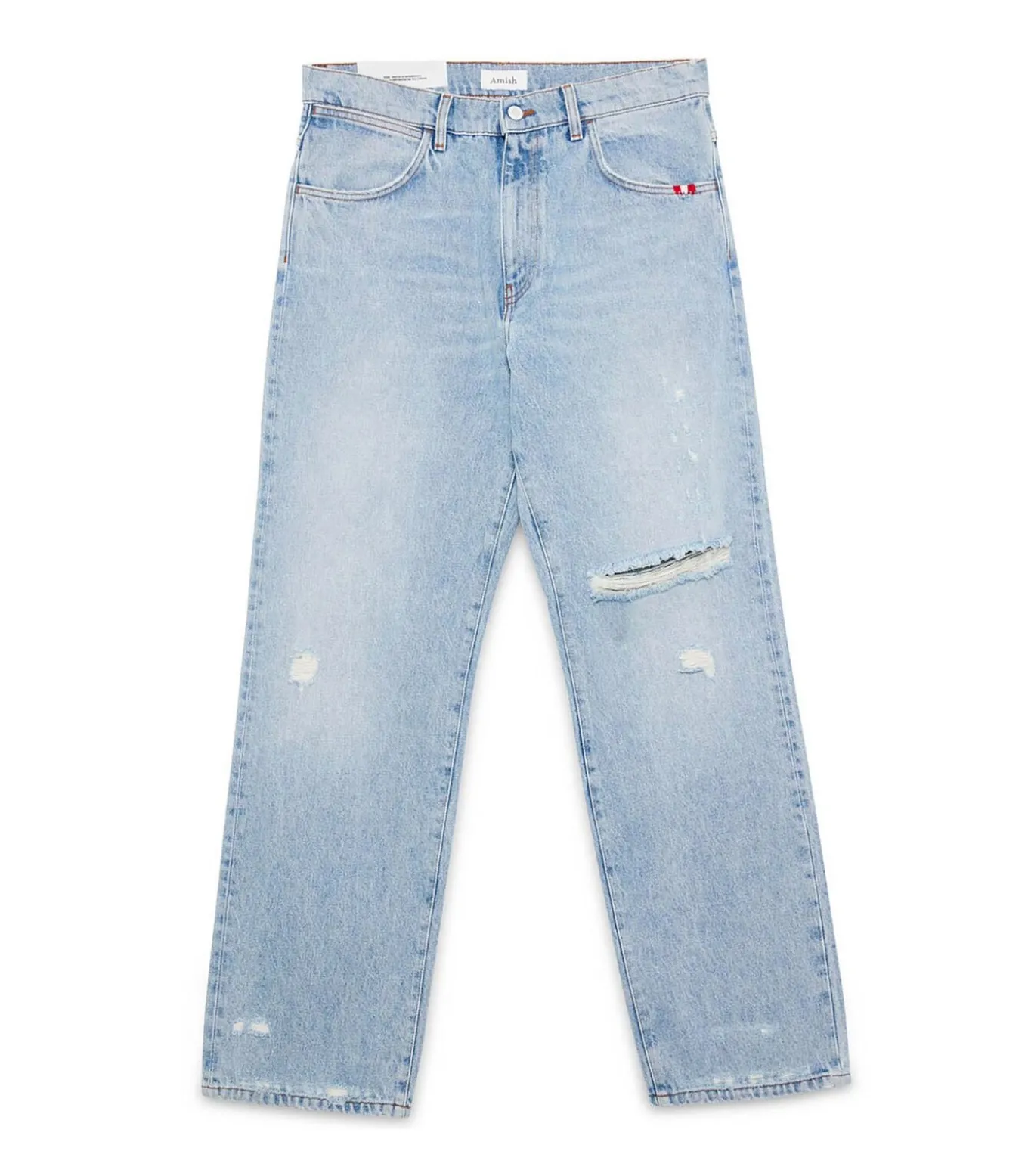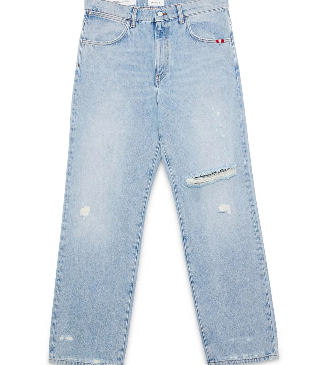 * Kleur: Licht denim * Samenstelling: 100% katoen * Sluiting: Sluiting met logoknoop en rits * Details: Used–effect en scheuren op de voorkant voor een casual en trendy look. Iconisch logo–stoflusje op de achterkant, achterzakken met contrasterend borduurwerk. * Gebruik: Ideaal voor een casual en trendy look, perfect te combineren met sneakers of sandalen voor een dagelijkse outfit met een sterk karakter.