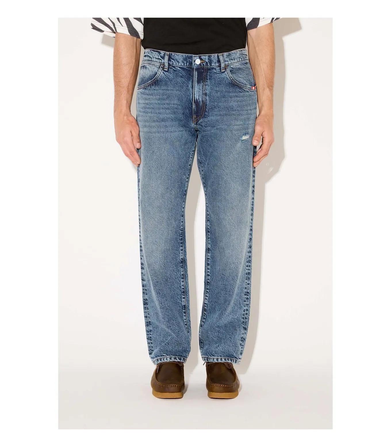 Kleur: Denim Samenstelling: 100% Katoen Pasvorm: Losvallend Sluiting: Logoknoop en rits Details: Medium wash marble stone denim jeans met lichte kreukeffecten, used–effect scheuren, label en logolusje op de achterkant. Voor– en achterzakken met contrasterend borduursel. Gebruik: Perfect voor een relaxte, urban look, ontworpen voor wie houdt van een vintage en comfortabele touch in zijn dagelijkse outfit.