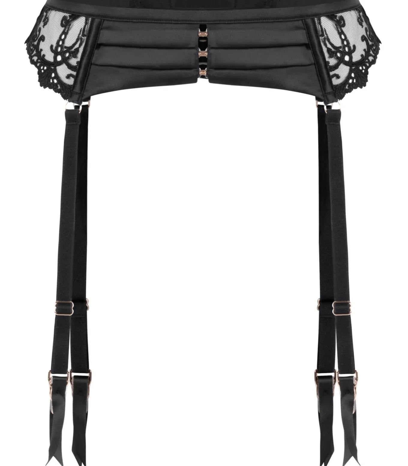 Verfraai je lingerielook met een vleugje verfijnde elegantie. Deze jarretelgordel is ontworpen in een stijlvolle suspender–vorm, gemaakt van delicaat bloemenkant en afgewerkt met een gladde satijnen tailleband voor een zacht, luxe gevoel. De verstelbare jarretelbandjes bieden een comfortabele en stevige pasvorm, terwijl het gestructureerde silhouet de taille voorzichtig definieert. Ontworpen om prachtig te combineren met kousen en het bijpassende kanten lingeriesetje. Het is de perfecte kledinglaag voor een gepolijste, vrouwelijke look.