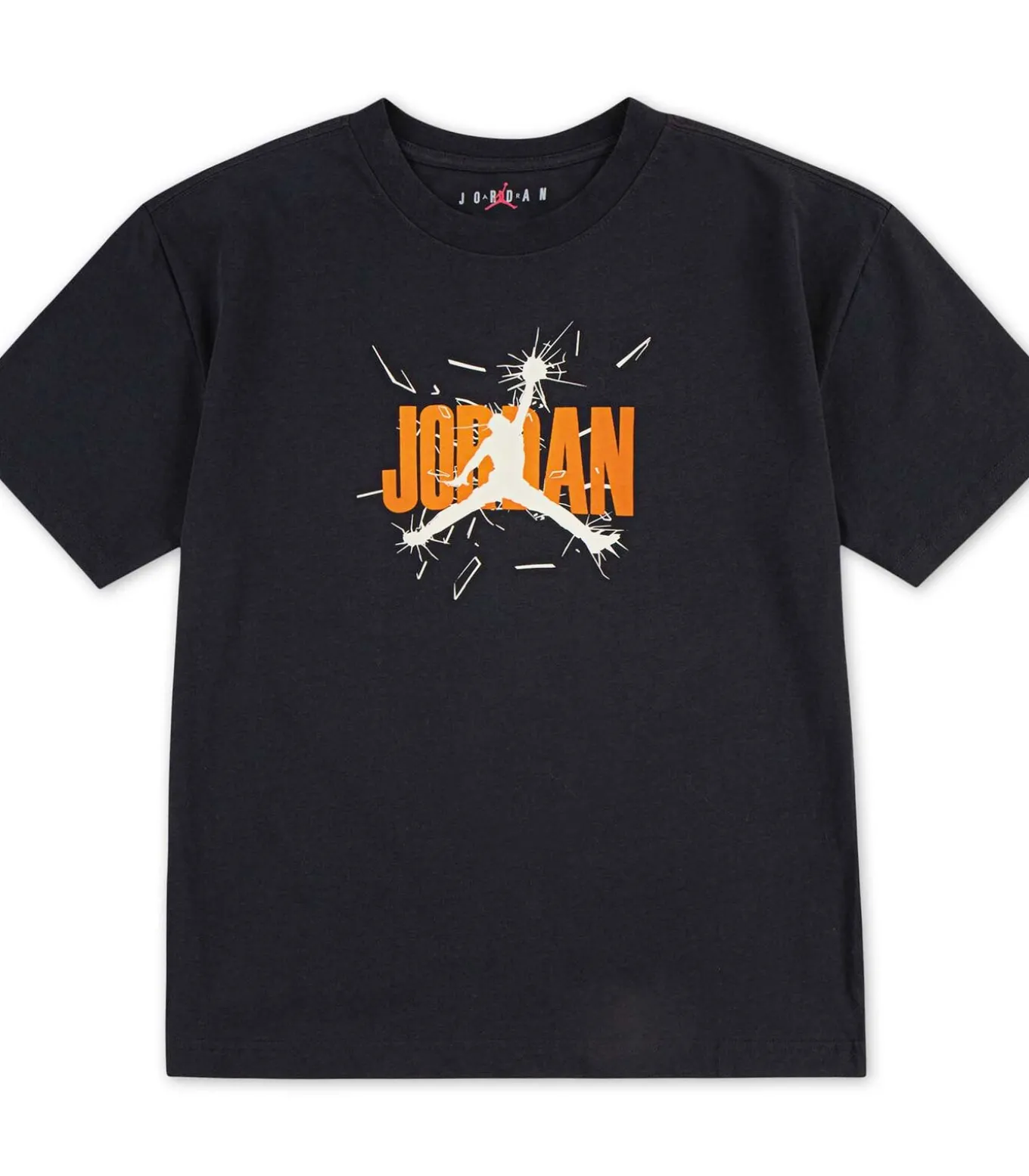 Kleur: Off Noir Samenstelling: 100% katoen Mouwen: kort Halslijn: ronde hals Pasvorm: normale pasvorm Details: print op de voorkant met Jordan–logo en grafische afbeelding met gebroken glas–effect, print op de achterkant met Air Jordan 1985–afbeelding Gebruik: ideaal voor jonge basketbalfans, perfect voor school, vrije tijd en sportactiviteiten