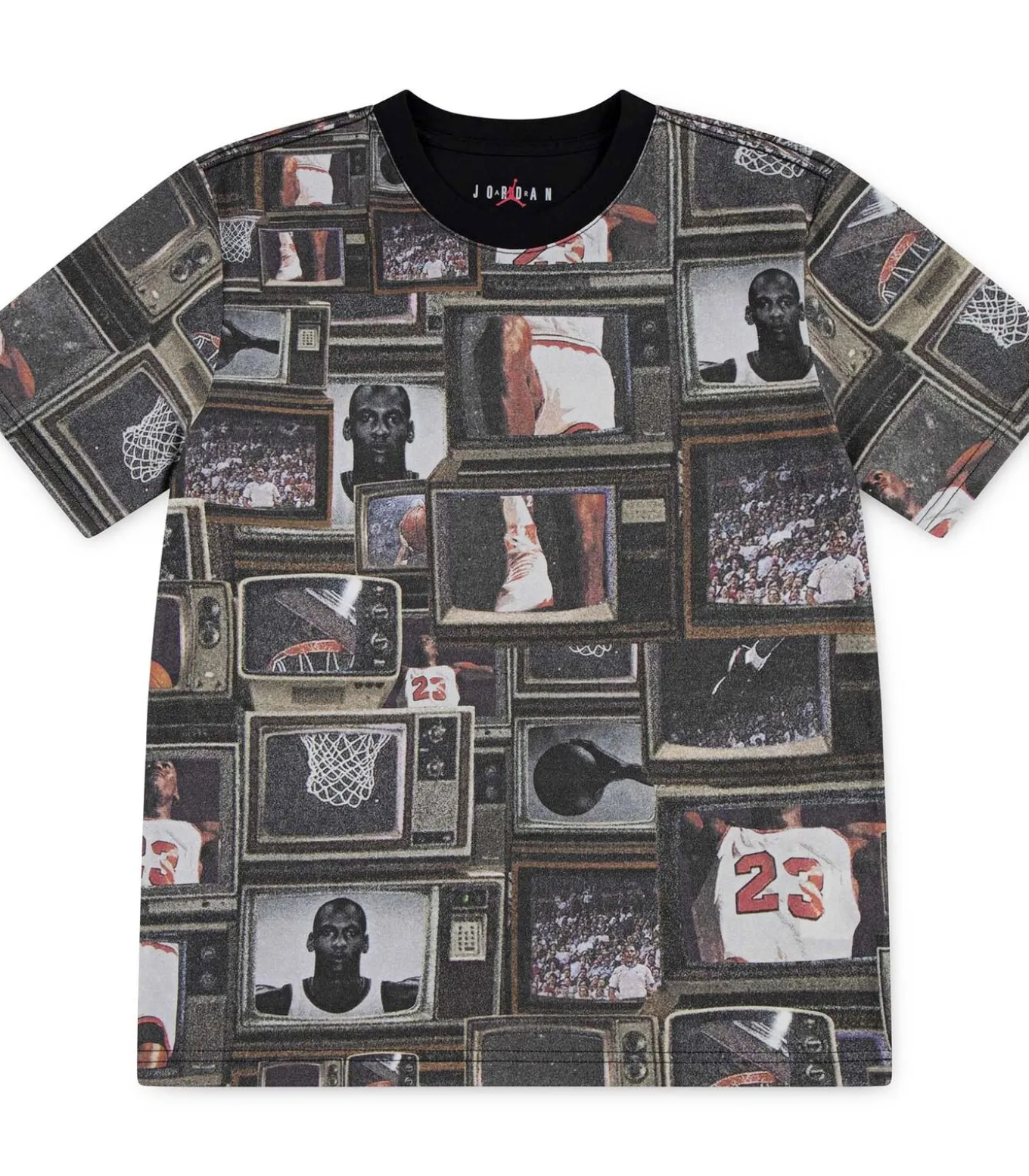Kleur: Zwart Samenstelling: 60% Katoen, 40% Polyester Mouwen: Kort Halslijn: Ronde Hals Pasvorm: Normale Pasvorm Details: All–over print geïnspireerd door Michael Jordan en de wereld van basketbal Gebruik: Perfect voor jonge sportliefhebbers, ideaal voor school, spelen en vrije tijd met een gedurfde look