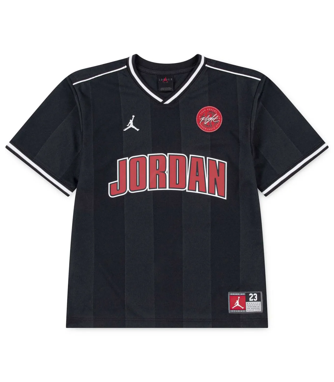 Kleur: Zwart Samenstelling: 100% Polyester Mouwen: Kort Halslijn: V–hals Details: Jordan–logo op de borst gedrukt; patch met handtekening en nummer 23; contrasterende profielen op de halslijn en mouwen Gebruik: Perfect voor wie op zoek is naar een sportieve en daadkrachtige look, ideaal voor vrije tijd en om je passie voor de Jordan–stijl uit te drukken