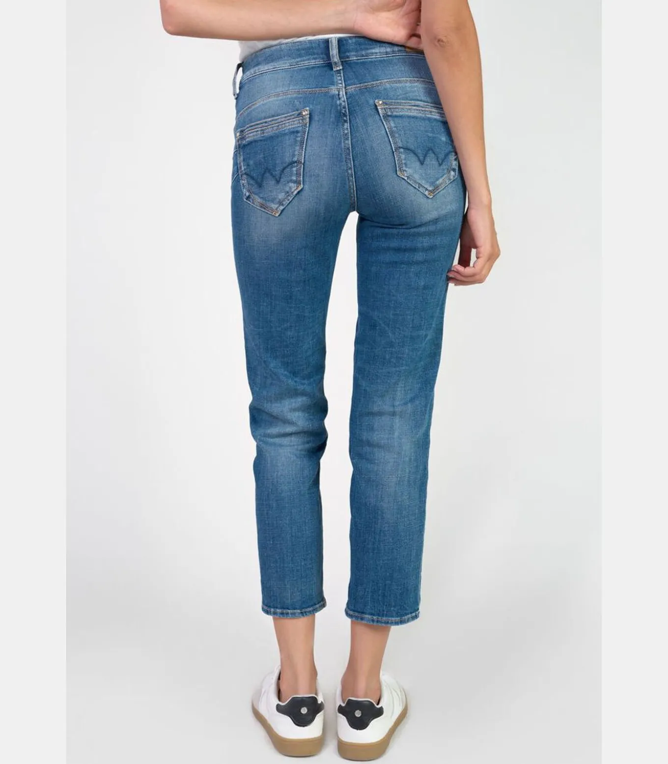 Nauw aansluitende pasvorm, regular voor de pijpen. Een mooi gevormd lichaam en een gegarandeerd mooi achterwerk door het push–up effect in combinatie met de hoge taille. Een jeans die iedere lichaamsbouw mooi doet uitkomen: slank, rond, klein of groot!