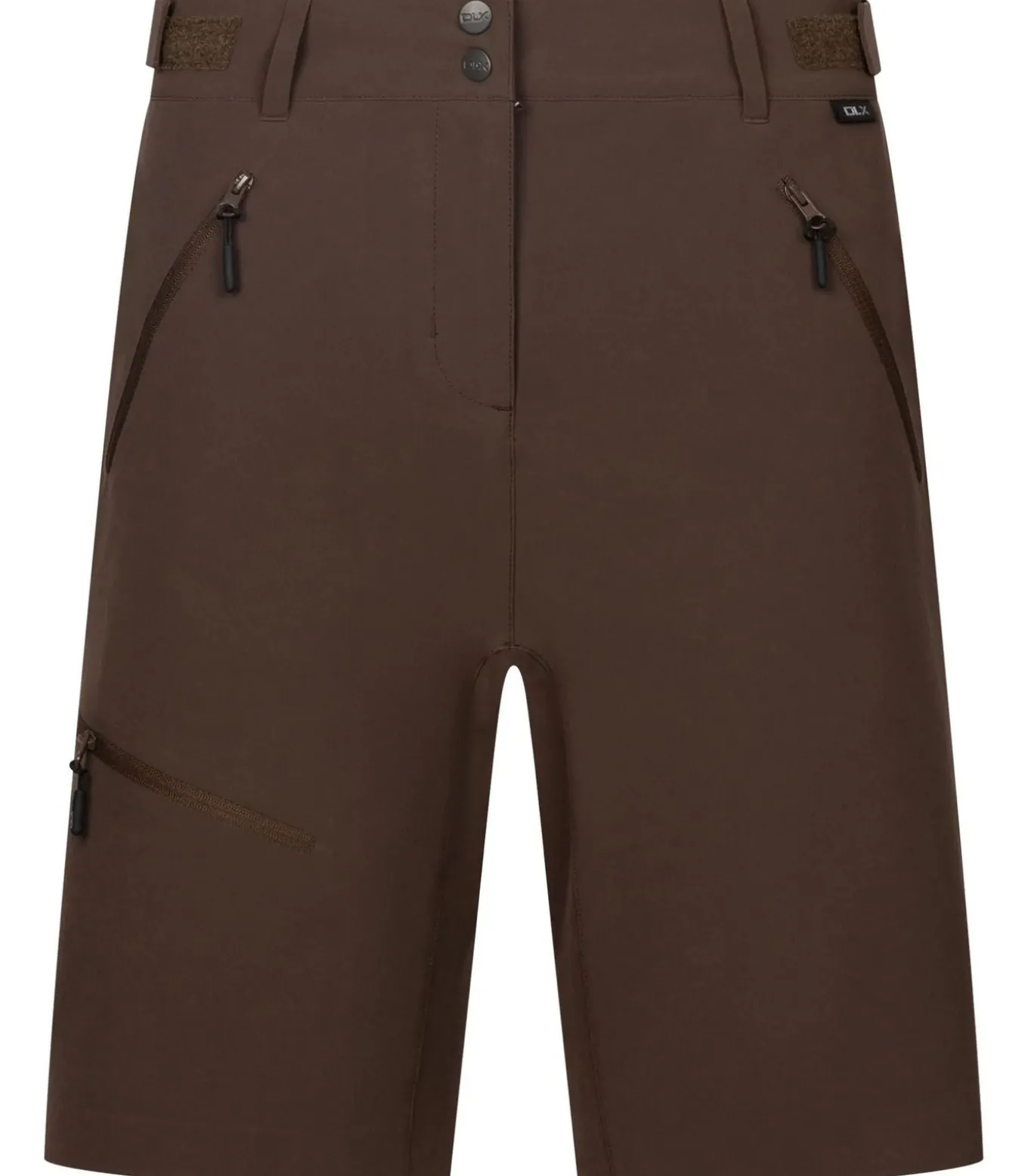 Product Description: Broek Trespass, Jocelyn DLX – Kortbroek – Bruin, gemaakt van 100% polyester. Dit broek heeft een eenvoudig ontwerp en is voorzien van drie ingezette zakken met ritssluiting. De sluiting bestaat uit drukknoopsluiting en ritssluiting. Het materiaal is voorzien van actief strech, ademend en lichtgewicht technologie. Verder heeft dit broek verstelbare zij– en riemlussen en een gulpopening. Het heeft een platte taillevorm en is geschikt voor comfort. Het broek is duurzaam en flexibel, en de durabiliteit is milieuvriendelijk en gemaakt van hergebruikte materialen.