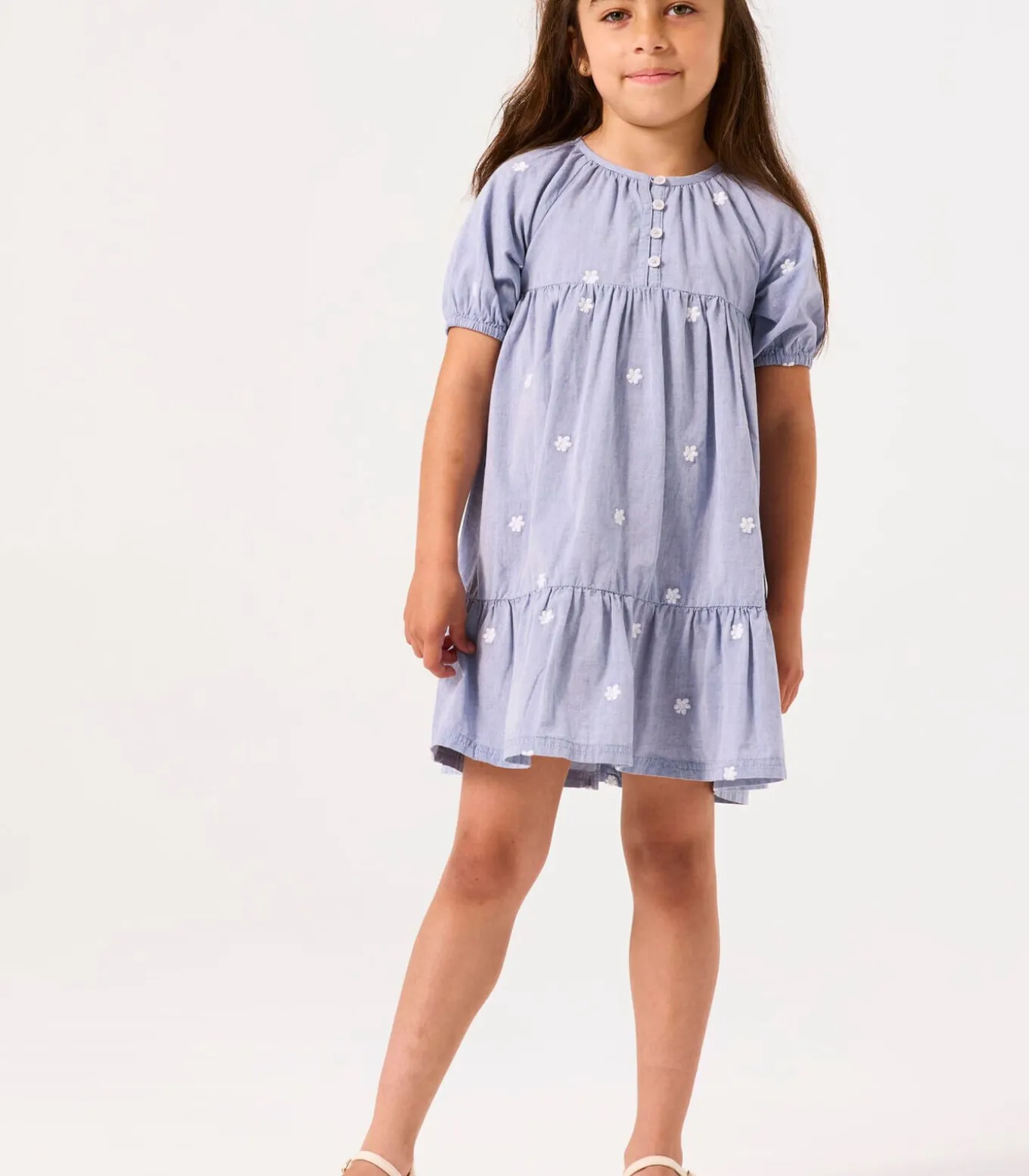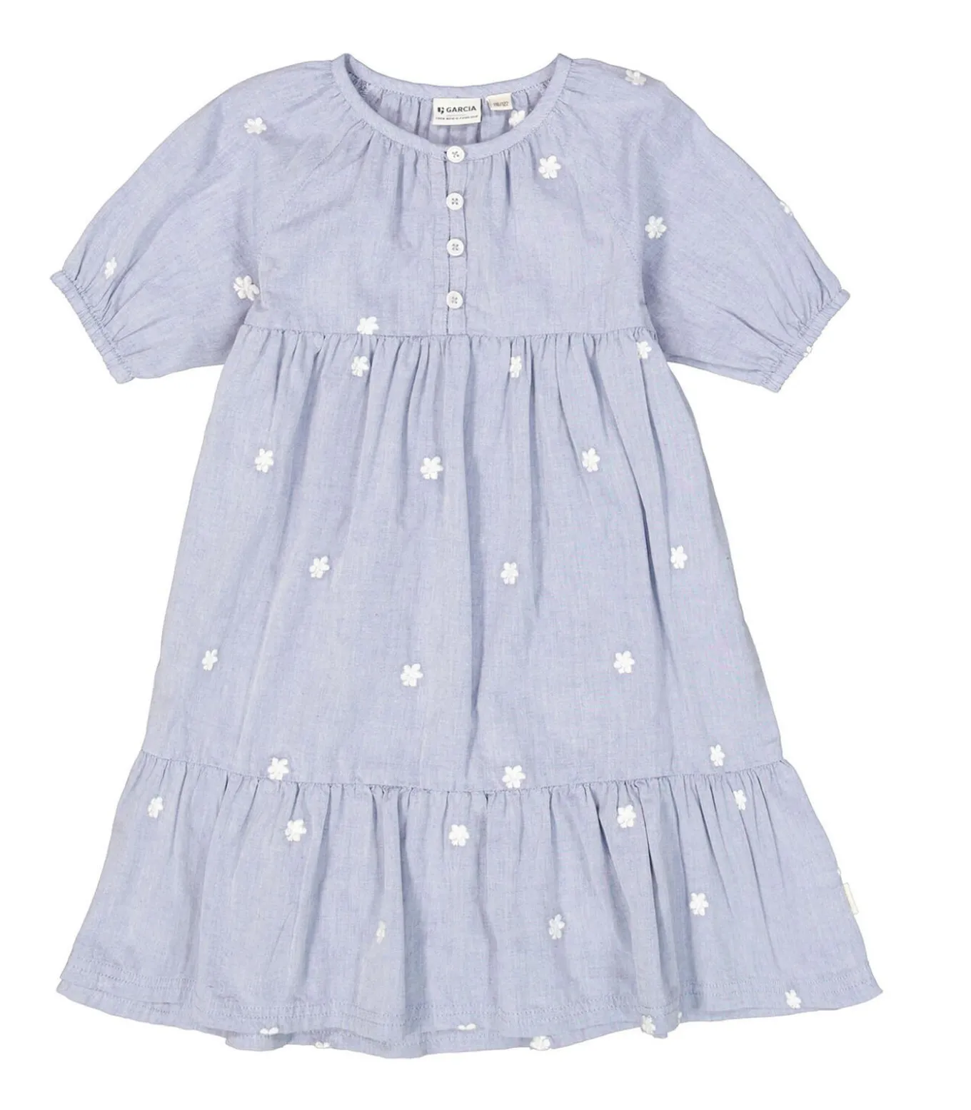 Jurk met subtiel bloemdetail. Dit item is echt een musthave voor het voorjaar. Deze jurk heeft gepofte mouwen, een ronde halslijn, knoopsluiting en een regular fit. Dit item is gemaakt van 100% katoen.Dit item valt klein uit. We adviseren je één maat groter te bestellen.