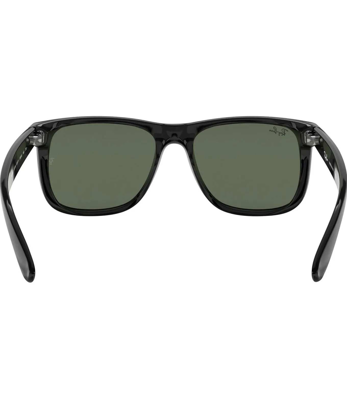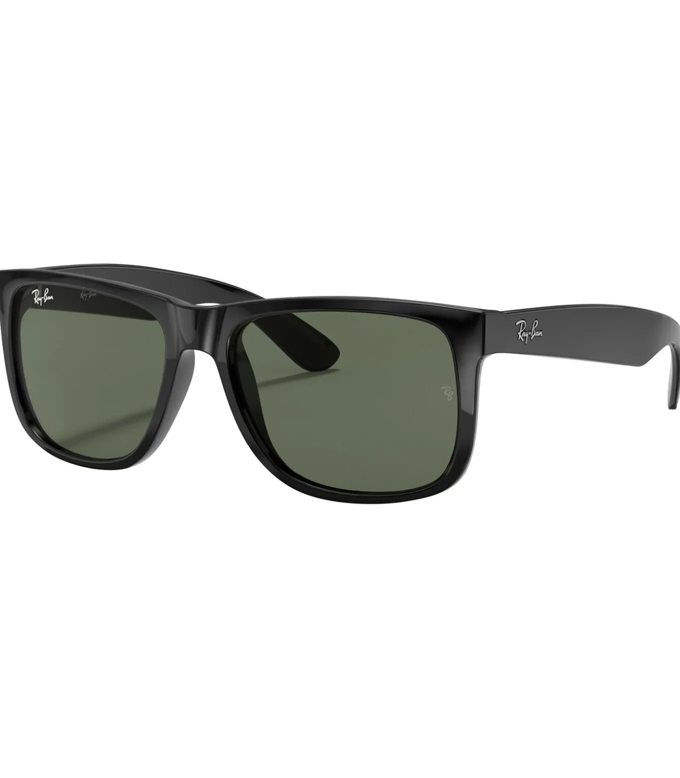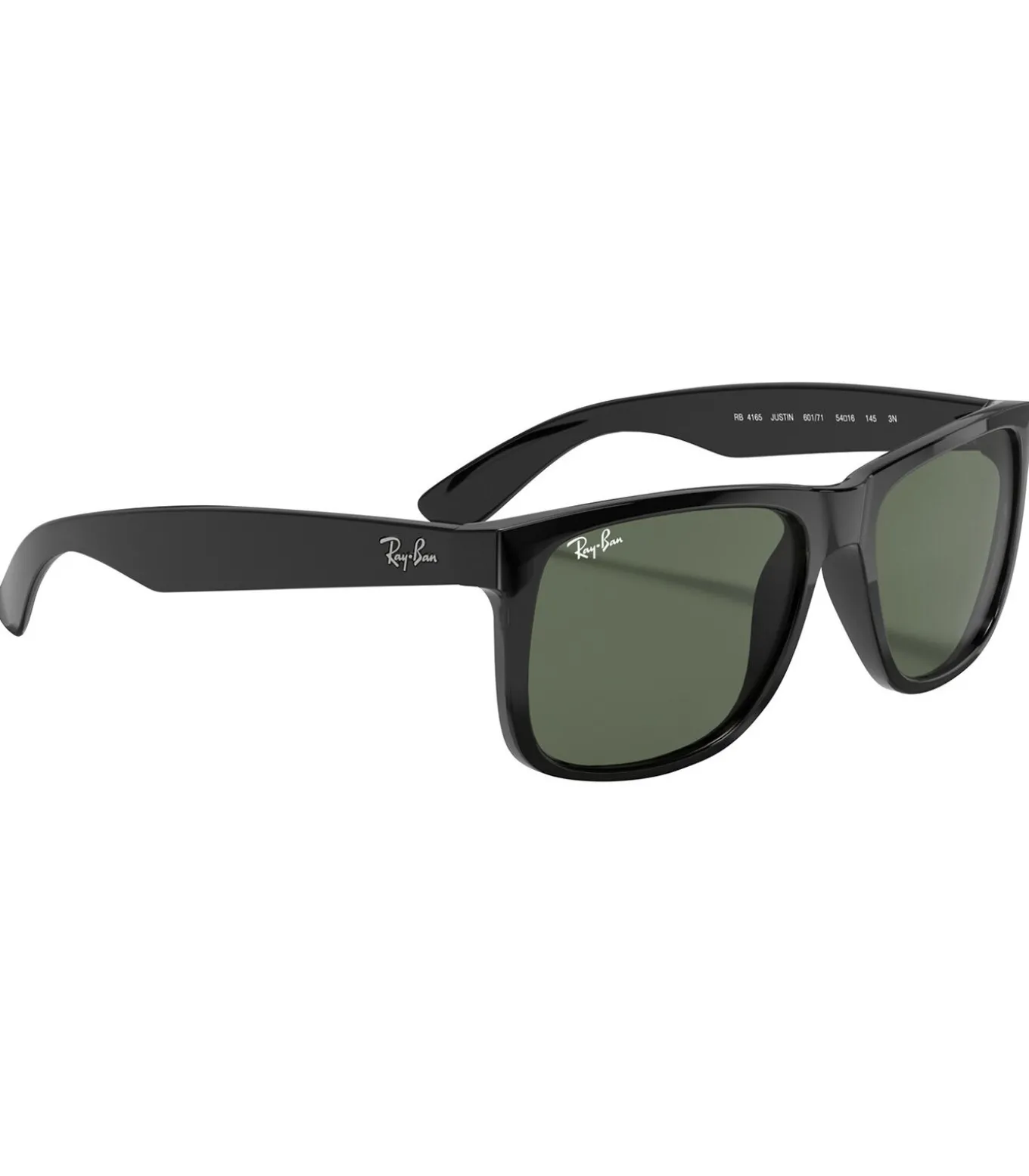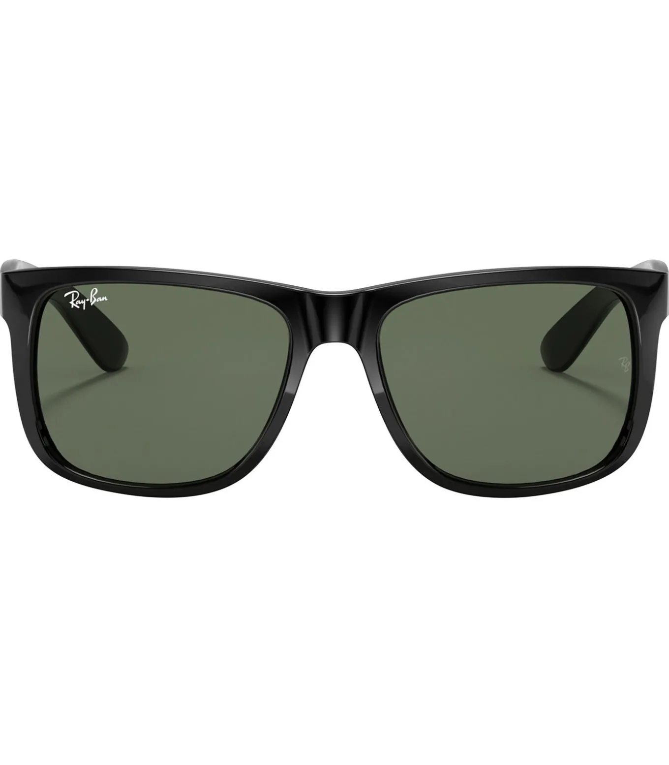 De Justin Classic zonnebril van Ray–Ban wordt geleverd met een klassieke lens in vierkante vorm. Deze zonnebril is verkrijgbaar in de kleur zwart en heeft een normale High Bridge Fit. Scharnier tot scharnier: 126 mm. Lenshoogte: 43,9 mm. Brugbreedte: 54 16 mm. Tempellengte: 145 mm.